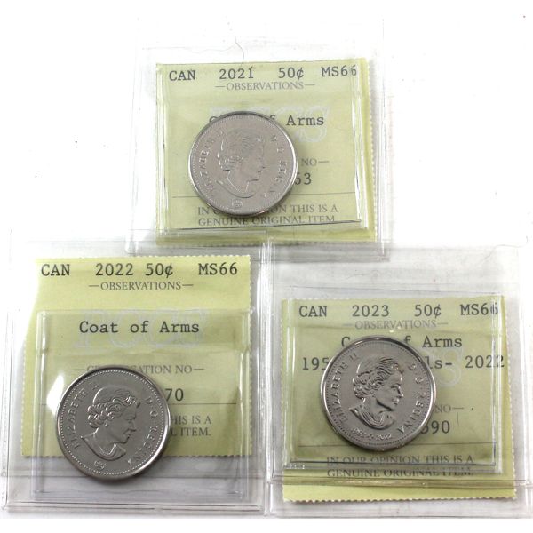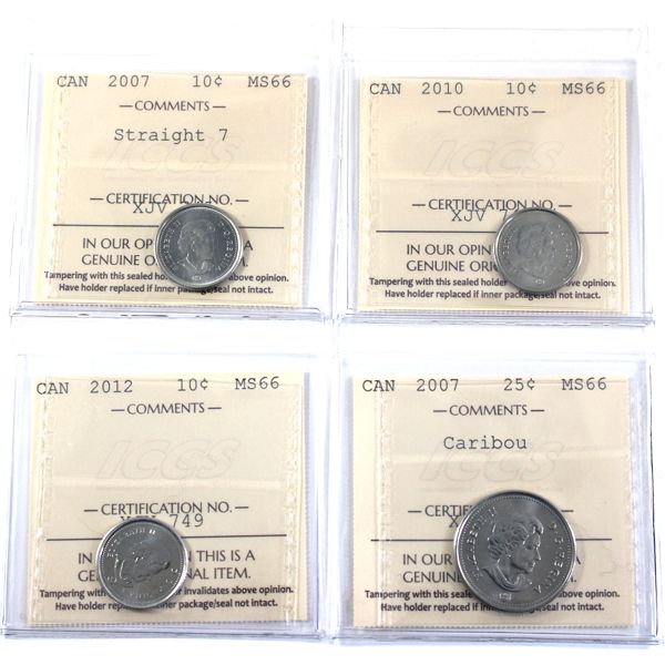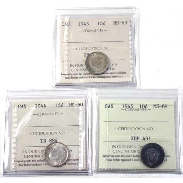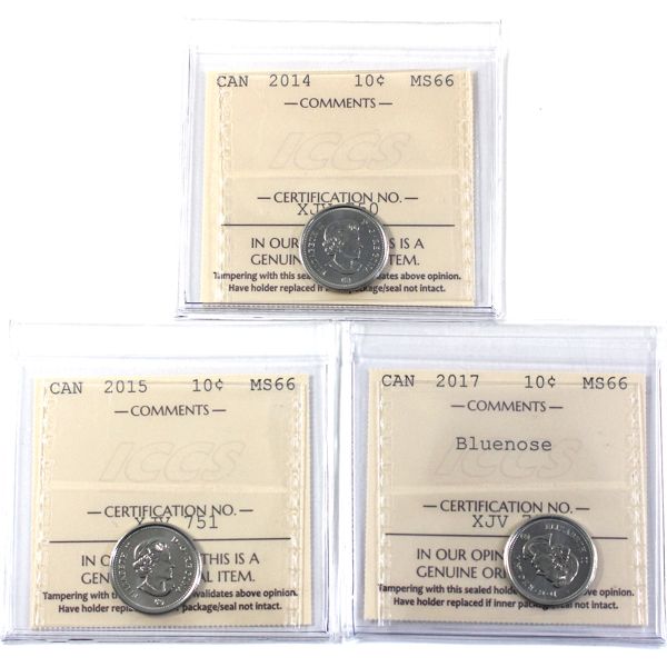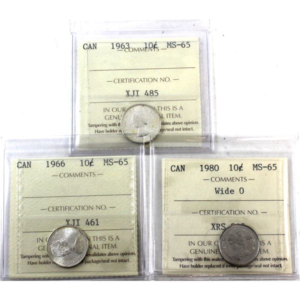 10-cent 1963, 1966 & 1980 Wide 0 All ICCS MS65. 3pcs.