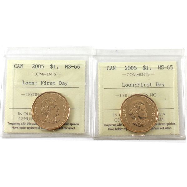 Loon $1 2005 First Day ICCS MS65 & MS66. 2pcs