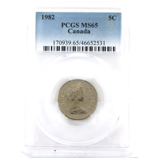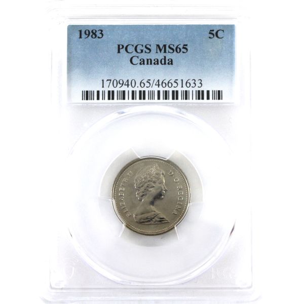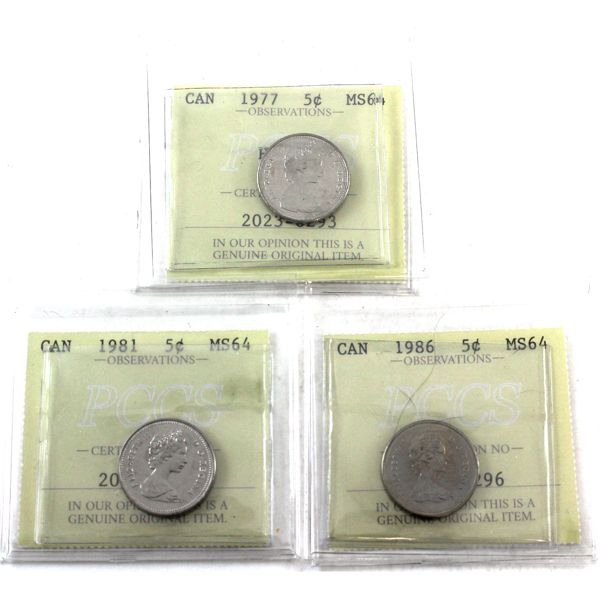 5-cent 1977 High 7, 1981 & 1986 PCCS (Professional Coin Certification System) MS64. 3pcs