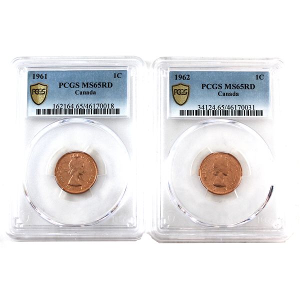 1-cent 1961 & 1962 PCGS MS65 Red. 2pcs.