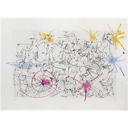 Artist: Dimitri Petrov, American (1919 - 1986) Title: Untitled - Nudes and Men in Suits Year: 1976 Medium: Etching with Watercolor, signed in penc