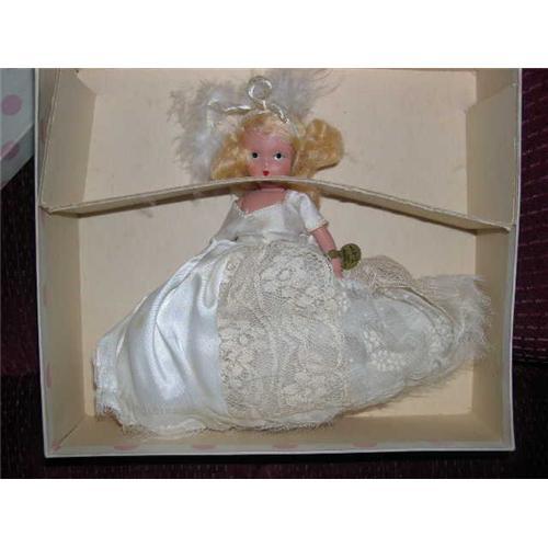 A Febuary Fairy Girl For Ice and Snow Nancy Ann Storybook Doll.This is a jointed leg doll with the strung on socket head like the old antique dolls. She's all original with her wrist tag and box. There are a few tiny tan spots on the satin. She has a separate slip and lace trimmed pantaloons. There is some old glue on the side of her wig. The ribbon has been retied in her hair with the boa. Box marked 188 A February Fairy Girl for Ice and Snow. The box has pink dots but some are faded. It has a cardboard insert to hold her in. Doll comes from a smoke free environment. Buyer to pay $12 for shipping, handling, and insurance.Thanks for viewing.