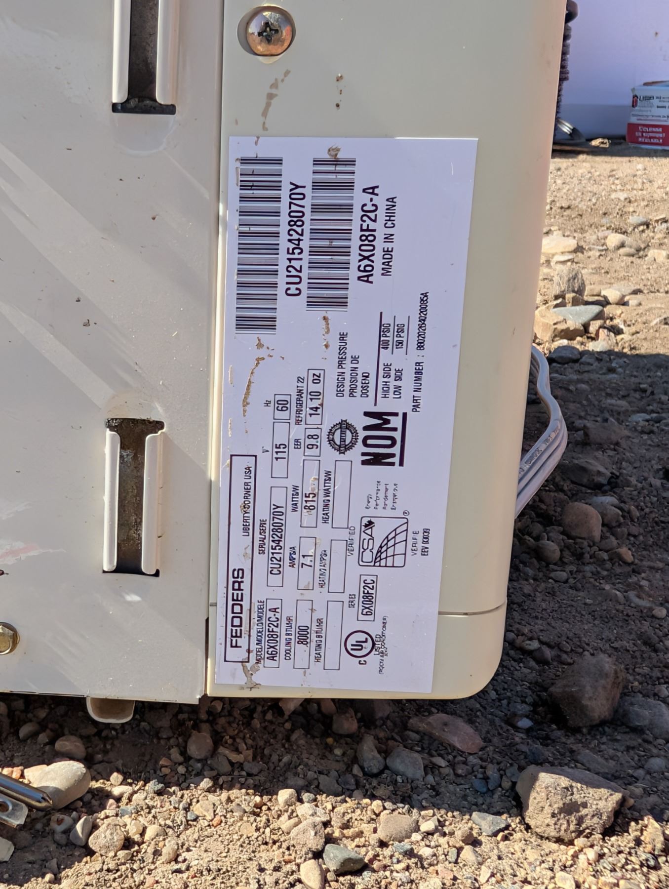 Fedders Room Air Conditioner Model: A6X08F2c-A