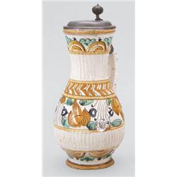Felvidék, Habán, 18. sz. elso fele, ónmázas fajansz, alján: "I.O." jelzéssel, m: 25,5 cm