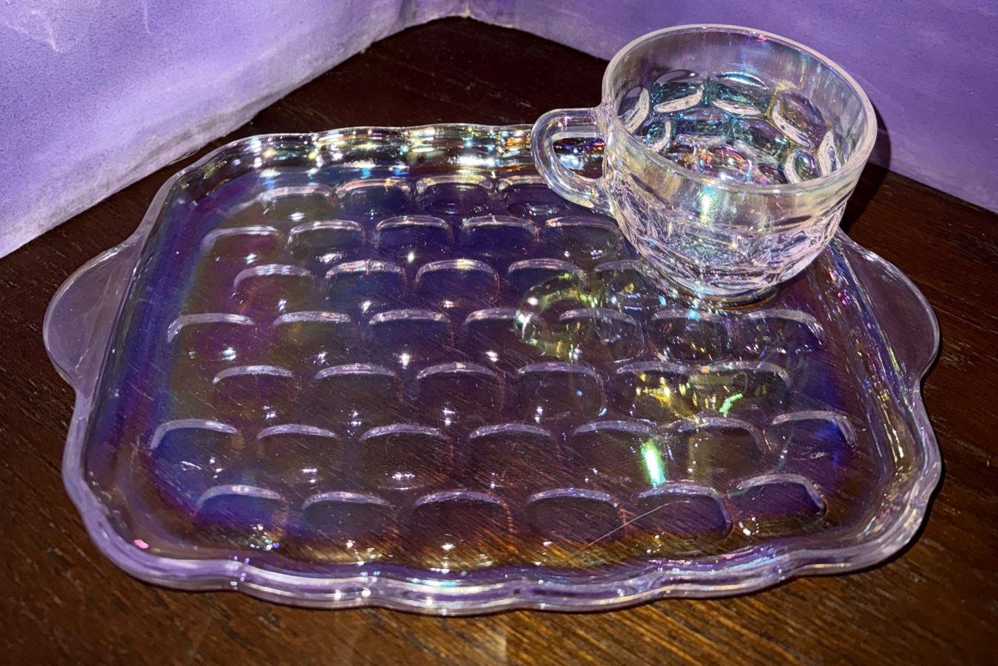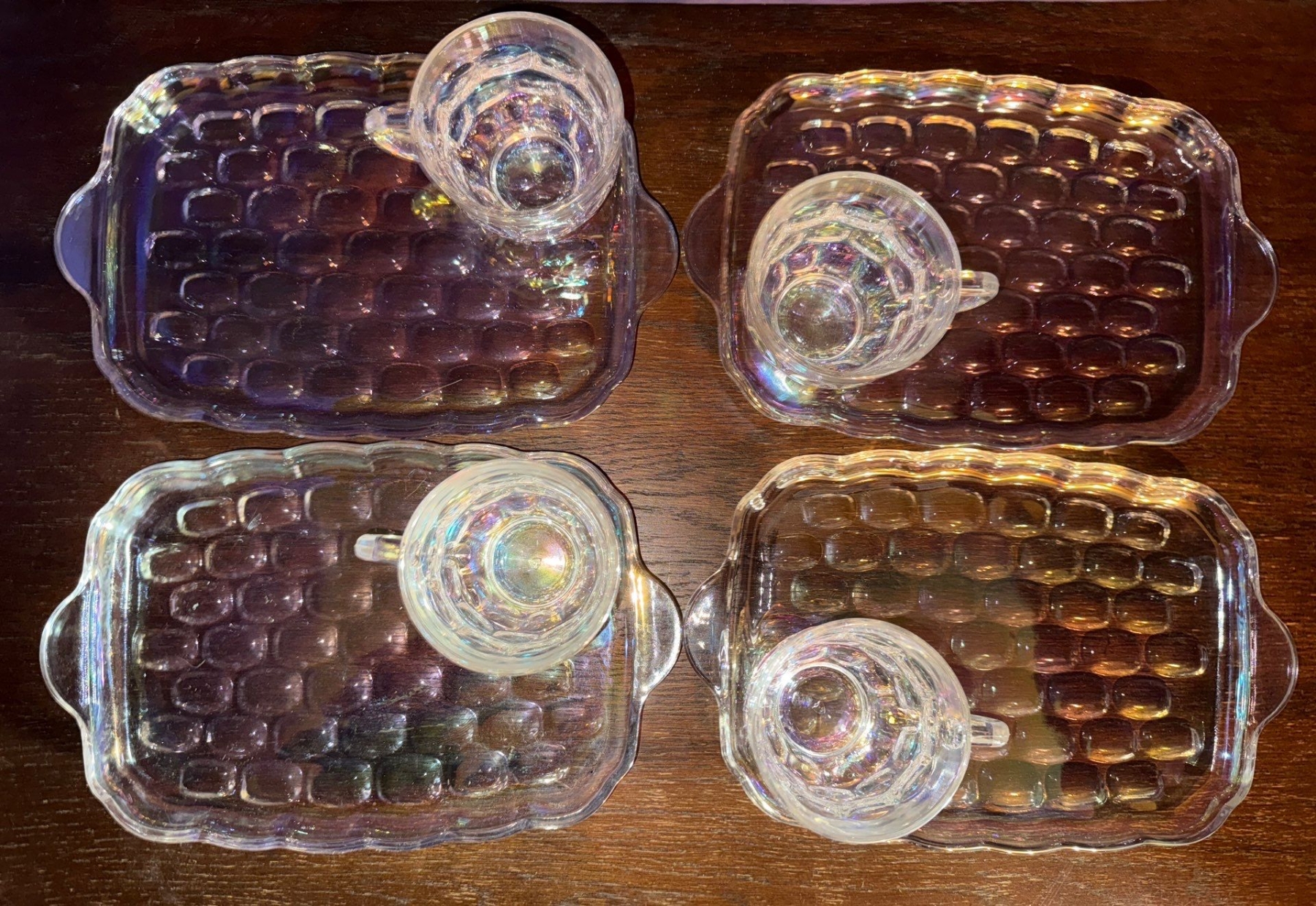 Federal Glass Company Yorktown Iridescent Bubble Thumb Snack Sets (4)