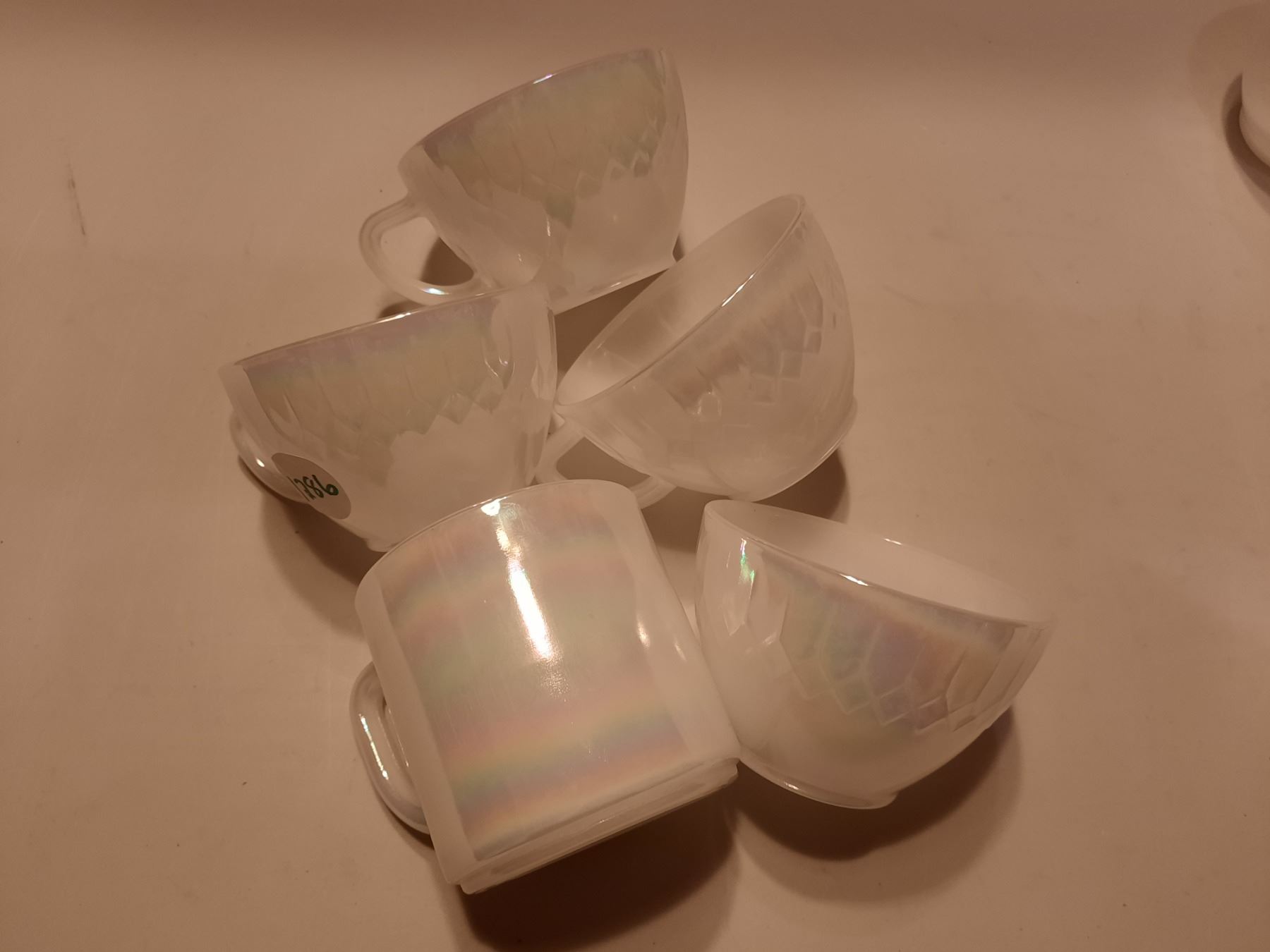 Federal Glass Moonglow Iridescent Cups (4 Tea 1 Coffee)