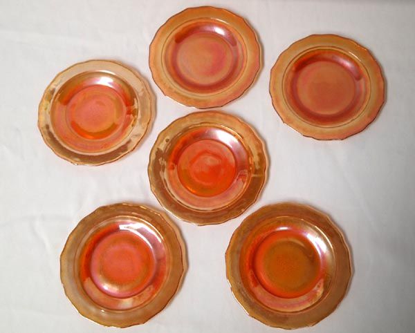 Federal Glass - ''Normandie'' 6 Bread & Butter Plates 6''. Popular pattern from Federal Glass, manufactured between 1933-40. Also known as ''Bouquet & Lattice''.