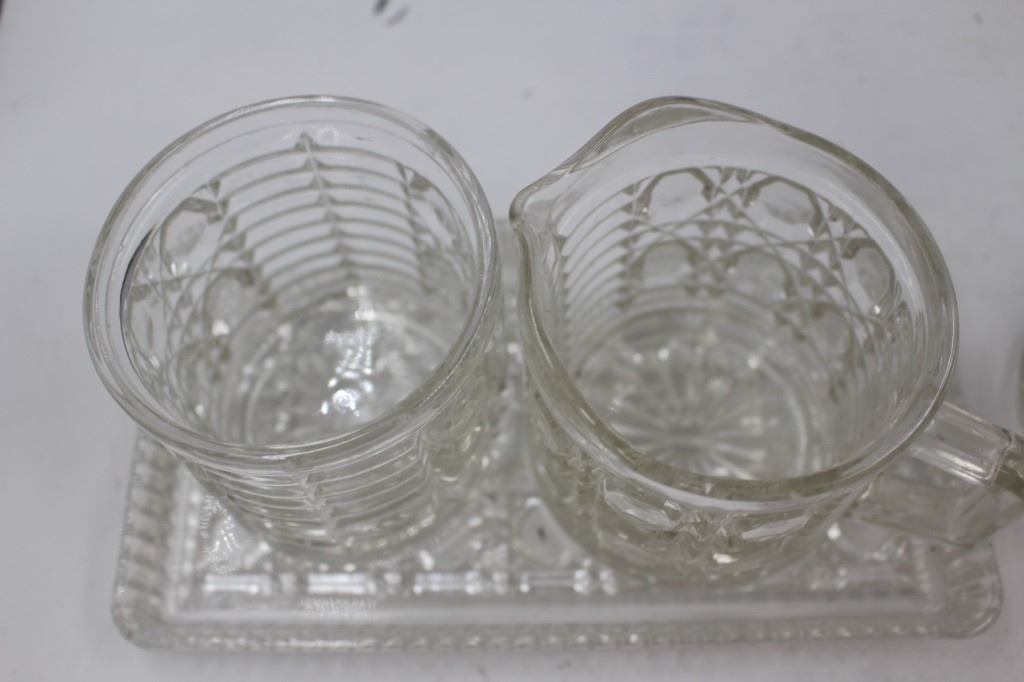 Design Cream and Sugar, Sugar Lid and Tray Water Jug Federal Glass Company was a popular glassware brand of the 20th century known for its proliferation of mid-century barware and beautifully crafted tableware. Famous for its frosted tumblers, raised patterns, and 22k gold embellishments, Federal began as a small pressed-glass company before expanding into Depression glass for decades. Some of Federal’s most famous pieces were Lustreware glasses, bar tumblers, and glow-in-the-dark uranium dishware.