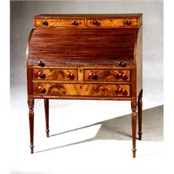 Federal Inlaid and Crossbanded Mahogany Lady's Tambour Cylinder Writing Desk, Attributed to the...