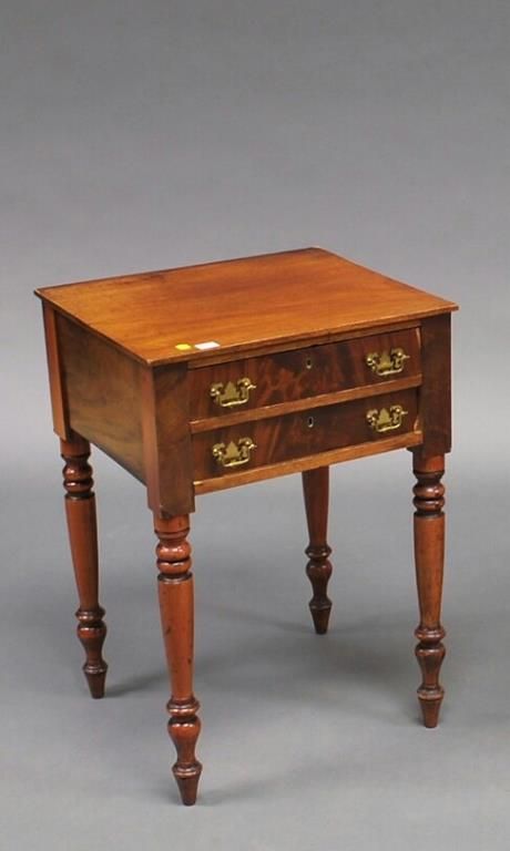 Federal Hahogany Veneered Two Drawer Work table is excellent condition. 37" why 22" depth, 25" wide