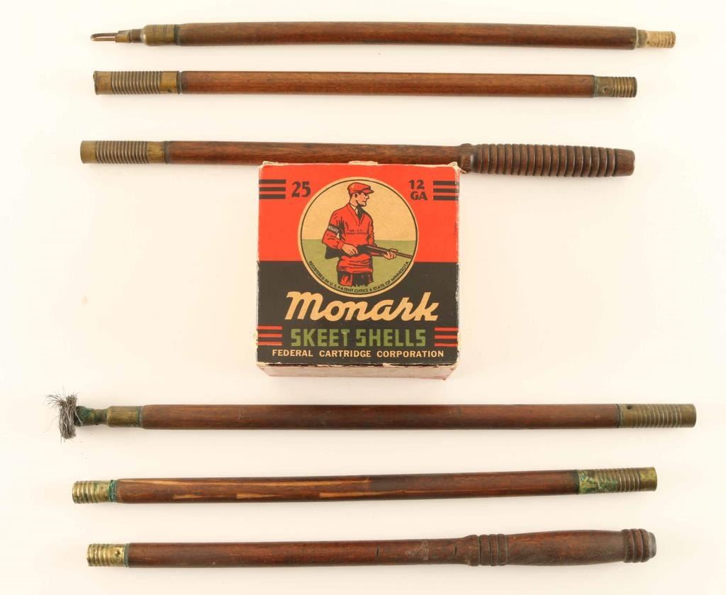 Federal Cartridge Corporation 24 Qty 12 Gauge Skeet Shells Inside The Original Box and 2 antique shotgun cleaning rods wood with brass furniture