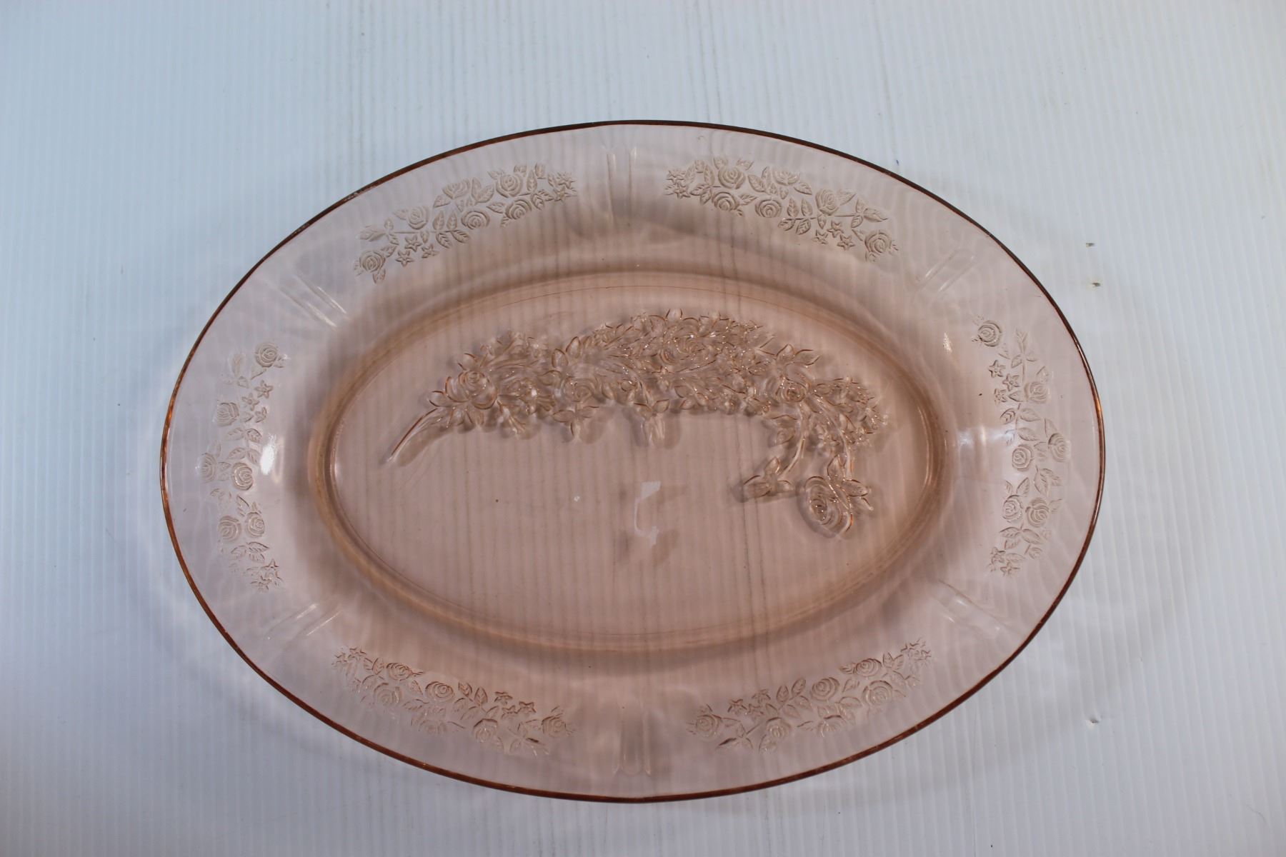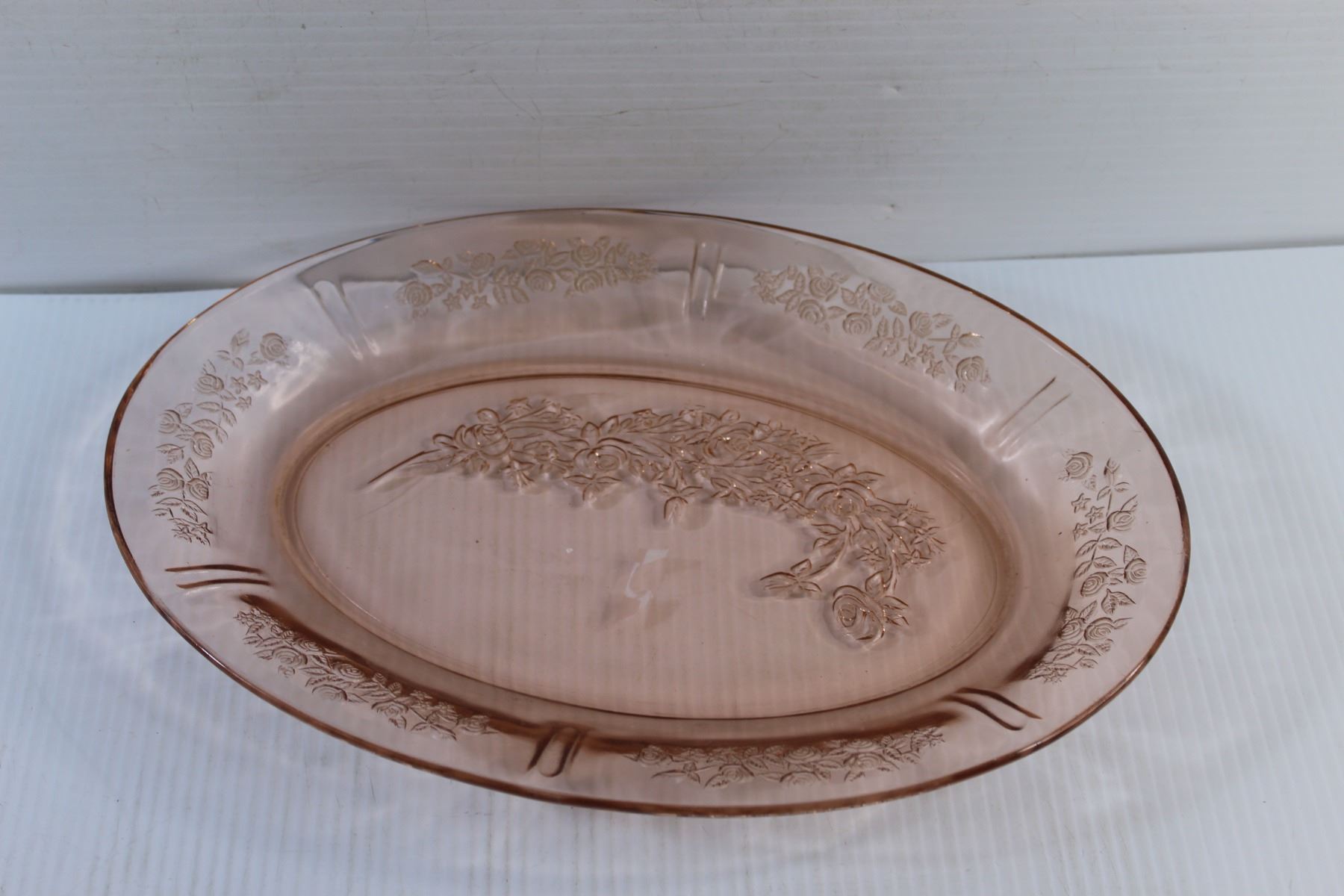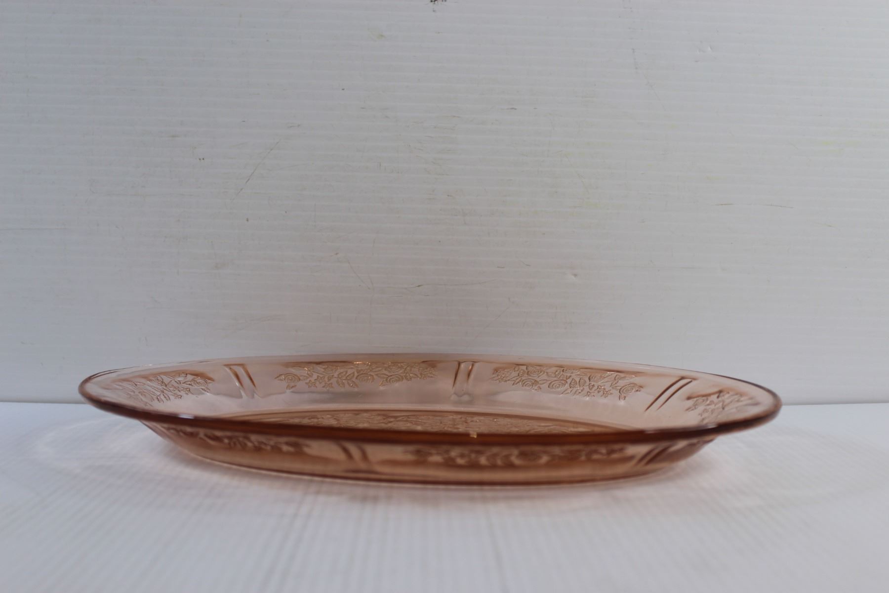 Federal Pink Cabbage Rose Glass Oval Platter - 12 1/2''
