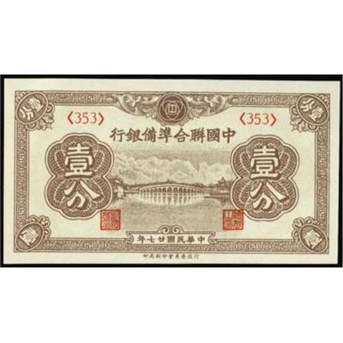 <style type="text/css"> body, td, th { font-family: Arial, Helvetica, sans-serif; font-size: 12px; color: #482424; margin: 0px; padding: 0px; } #header { background-image: url(http://www.bowersandmerena.com/ebay/images/template_v3_01.gif); clear: both; background-color: #590303; border-top-width: 2px; border-top-style: solid; border-top-color: #B38C4F; } #header #header_wrapper { height: 75px; clear: both; width: 800px; margin-right: auto; margin-left: auto; background-image: url(http://www.bowersandmerena.com/ebay/images/template_v3_03.gif); background-repeat: no-repeat; background-position: right; color: #F3EDCC; } #header #header_wrapper #header_logo { float: left; height: 75px; width: 444px; background-image: url(http://www.bowersandmerena.com/ebay/images/template_v3_02.gif); background-repeat: no-repeat; font-size: 10px; text-transform: capitalize; color: #B38C4F; } #header #header_wrapper #header_right { float: left; height: 75px; width: 356px; text-align: right; } #header #header_wrapper #header_right #headerLoginBtn { margin-bottom: 30px; } #header #header_wrapper #header_right input#txtSearch { color: #B49056; border: 1px solid #B49056; width: 175px; padding-top: 3px; padding-right: 3px; padding-bottom: 4px; padding-left: 3px; } #nav { height: 37px; background-image: url(http://www.bowersandmerena.com/ebay/images/template_v3_05.gif); clear: both; } #nav #nav_wrapper { height: 35px; width: 800px; margin-right: auto; margin-left: auto; border-left-width: 1px; border-left-style: solid; border-left-color: #B38C4F; } #nav #nav_wrapper a { padding-right: 15px; padding-left: 15px; border-right-width: 1px; border-right-style: solid; border-right-color: #B38C4F; height: 25px; padding-top: 10px; display: block; float: left; text-decoration: none; font-weight: bold; color: #5D0303; } #nav #nav_wrapper a:hover { color: #B38C4F; } #nav #nav_wrapper #search { float: right; padding-top: 7px; } #nav #nav_wrapper #search #txtSearch { font-family: Arial, Helvetica, sans-serif; font-size: 10px; text-transform: uppercase; color: #D2AE75; border: 1px solid #B38C4F; padding: 3px; } #content_bgd { background-image: url(http://www.bowersandmerena.com/ebay/images/template_v3_09.gif); background-repeat: repeat-y; background-position: center; padding-top: 15px; padding-bottom: 15px; background-color: #FBFBDB; } #content_wrapper { clear: both; height: auto; width: 800px; margin-right: auto; margin-left: auto; } .LotDetailWhite { line-height:normal; font-size:13px; font-family: arial,helvetica,sans-serif; color: White; font-weight: bold; } .LotDetailInformation { line-height:normal; font-size: 13px; font-family: arial,helvetica,sans-serif; } .LotDetailMessage { line-height:normal; font-size: 13px; font-family: arial,helvetica,sans-serif; color: red; } } tr.HeaderAuctionTitle td { color: #000000; font-weight: bold; padding: 2px; background-image: url(http://www.bowersandmerena.com/ebay/images/template_v3_05.gif); background-repeat: repeat-x; border-bottom-width: 1px; border-bottom-style: solid; border-bottom-color: #B38C4F; } table.AuctionSummary a, table.AuctionSummary a:link, table.AuctionSummary a:visited { color: #0000FF; text-decoration: none; } } td.tableHeaderLeft { border-left-width: 1px; border-left-style: solid; border-left-color: #B38C4F; } td.tableHeaderRight { border-right-width: 1px; border-right-style: solid; border-right-color: #B38C4F; } td.tableCellMiddle { border-left-width: 1px; border-left-style: solid; border-left-color: #B38C4F; border-right-width: 1px; border-right-style: solid; border-right-color: #B38C4F; padding: 5px; } tr.footer td { border-top-width: 1px; border-top-style: solid; border-top-color: #B38C4F; } </style> </head> <body> <div id="header"> <div id="header_wrapper"> <div id="header_logo"> </div> <div id="header_right"> </div> </div> </div> <div id="nav"> <div id="nav_wrapper"> <a href="http://www.bowersandmerena.com">Our eBayLive Auctions</a> <a href="#PaymentInfo">Payment Information</a> <a href="#ShippingInfo">Shipping Information</a> <a href="#About">About Bowers and Merena</a> </div> </div> <div id="content_bgd"> <div id="content_wrapper"> <table width="100%" border="0" cellpadding="5" cellspacing="0" class="AuctionSummary"> <tbody> <tr class="HeaderAuctionTitle" style="height: 25px;"> <td align="left" class="tableHeaderLeft" > </td> <td align="center" class="tableHeaderRight"> <span style="font-size: large;">Lot #430. Japanese Puppet Banks--Manchukuo. Federal Reserve Bank of China, 1938 First Issue.</span> </td> </tr> <tr> <td colspan="3" class="tableCellMiddle"> Lot of 12 notes. Lot includes 1 Fen through 50 Fen, P-J45 through P-J49. All but 2 grade CU.