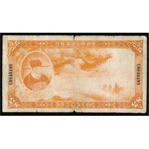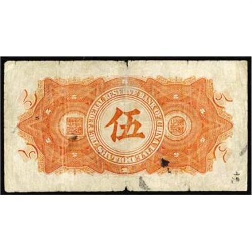 <style type="text/css"> body, td, th { font-family: Arial, Helvetica, sans-serif; font-size: 12px; color: #482424; margin: 0px; padding: 0px; } #header { background-image: url(http://www.bowersandmerena.com/ebay/images/template_v3_01.gif); clear: both; background-color: #590303; border-top-width: 2px; border-top-style: solid; border-top-color: #B38C4F; } #header #header_wrapper { height: 75px; clear: both; width: 800px; margin-right: auto; margin-left: auto; background-image: url(http://www.bowersandmerena.com/ebay/images/template_v3_03.gif); background-repeat: no-repeat; background-position: right; color: #F3EDCC; } #header #header_wrapper #header_logo { float: left; height: 75px; width: 444px; background-image: url(http://www.bowersandmerena.com/ebay/images/template_v3_02.gif); background-repeat: no-repeat; font-size: 10px; text-transform: capitalize; color: #B38C4F; } #header #header_wrapper #header_right { float: left; height: 75px; width: 356px; text-align: right; } #header #header_wrapper #header_right #headerLoginBtn { margin-bottom: 30px; } #header #header_wrapper #header_right input#txtSearch { color: #B49056; border: 1px solid #B49056; width: 175px; padding-top: 3px; padding-right: 3px; padding-bottom: 4px; padding-left: 3px; } #nav { height: 37px; background-image: url(http://www.bowersandmerena.com/ebay/images/template_v3_05.gif); clear: both; } #nav #nav_wrapper { height: 35px; width: 800px; margin-right: auto; margin-left: auto; border-left-width: 1px; border-left-style: solid; border-left-color: #B38C4F; } #nav #nav_wrapper a { padding-right: 15px; padding-left: 15px; border-right-width: 1px; border-right-style: solid; border-right-color: #B38C4F; height: 25px; padding-top: 10px; display: block; float: left; text-decoration: none; font-weight: bold; color: #5D0303; } #nav #nav_wrapper a:hover { color: #B38C4F; } #nav #nav_wrapper #search { float: right; padding-top: 7px; } #nav #nav_wrapper #search #txtSearch { font-family: Arial, Helvetica, sans-serif; font-size: 10px; text-transform: uppercase; color: #D2AE75; border: 1px solid #B38C4F; padding: 3px; } #content_bgd { background-image: url(http://www.bowersandmerena.com/ebay/images/template_v3_09.gif); background-repeat: repeat-y; background-position: center; padding-top: 15px; padding-bottom: 15px; background-color: #FBFBDB; } #content_wrapper { clear: both; height: auto; width: 800px; margin-right: auto; margin-left: auto; } .LotDetailWhite { line-height:normal; font-size:13px; font-family: arial,helvetica,sans-serif; color: White; font-weight: bold; } .LotDetailInformation { line-height:normal; font-size: 13px; font-family: arial,helvetica,sans-serif; } .LotDetailMessage { line-height:normal; font-size: 13px; font-family: arial,helvetica,sans-serif; color: red; } } tr.HeaderAuctionTitle td { color: #000000; font-weight: bold; padding: 2px; background-image: url(http://www.bowersandmerena.com/ebay/images/template_v3_05.gif); background-repeat: repeat-x; border-bottom-width: 1px; border-bottom-style: solid; border-bottom-color: #B38C4F; } table.AuctionSummary a, table.AuctionSummary a:link, table.AuctionSummary a:visited { color: #0000FF; text-decoration: none; } } td.tableHeaderLeft { border-left-width: 1px; border-left-style: solid; border-left-color: #B38C4F; } td.tableHeaderRight { border-right-width: 1px; border-right-style: solid; border-right-color: #B38C4F; } td.tableCellMiddle { border-left-width: 1px; border-left-style: solid; border-left-color: #B38C4F; border-right-width: 1px; border-right-style: solid; border-right-color: #B38C4F; padding: 5px; } tr.footer td { border-top-width: 1px; border-top-style: solid; border-top-color: #B38C4F; } </style> </head> <body> <div id="header"> <div id="header_wrapper"> <div id="header_logo"> </div> <div id="header_right"> </div> </div> </div> <div id="nav"> <div id="nav_wrapper"> <a href="http://www.bowersandmerena.com">Our eBayLive Auctions</a> <a href="#PaymentInfo">Payment Information</a> <a href="#ShippingInfo">Shipping Information</a> <a href="#About">About Bowers and Merena</a> </div> </div> <div id="content_bgd"> <div id="content_wrapper"> <table width="100%" border="0" cellpadding="5" cellspacing="0" class="AuctionSummary"> <tbody> <tr class="HeaderAuctionTitle" style="height: 25px;"> <td align="left" class="tableHeaderLeft" > </td> <td align="center" class="tableHeaderRight"> <span style="font-size: large;">Lot #395. Japanese Puppet Banks. Federal Reserve Bank of China, 1938 Second Issue.</span> </td> </tr> <tr> <td colspan="3" class="tableCellMiddle"> 1938. $5, P-J56a., VG+ to Fine with small missing pieces at fold in middle top and bottom of note. Scarce in any grade.