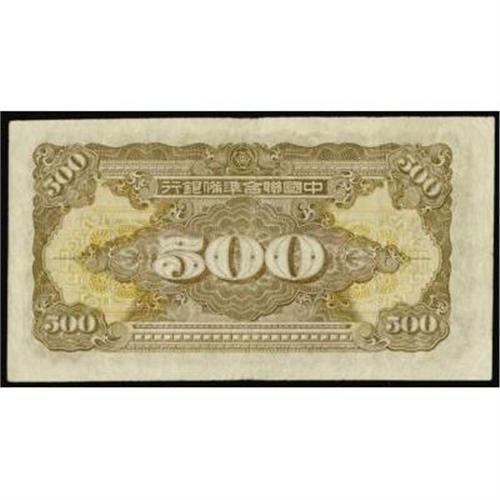<style type="text/css"> body, td, th { font-family: Arial, Helvetica, sans-serif; font-size: 12px; color: #482424; margin: 0px; padding: 0px; } #header { background-image: url(http://www.bowersandmerena.com/ebay/images/template_v3_01.gif); clear: both; background-color: #590303; border-top-width: 2px; border-top-style: solid; border-top-color: #B38C4F; } #header #header_wrapper { height: 75px; clear: both; width: 800px; margin-right: auto; margin-left: auto; background-image: url(http://www.bowersandmerena.com/ebay/images/template_v3_03.gif); background-repeat: no-repeat; background-position: right; color: #F3EDCC; } #header #header_wrapper #header_logo { float: left; height: 75px; width: 444px; background-image: url(http://www.bowersandmerena.com/ebay/images/template_v3_02.gif); background-repeat: no-repeat; font-size: 10px; text-transform: capitalize; color: #B38C4F; } #header #header_wrapper #header_right { float: left; height: 75px; width: 356px; text-align: right; } #header #header_wrapper #header_right #headerLoginBtn { margin-bottom: 30px; } #header #header_wrapper #header_right input#txtSearch { color: #B49056; border: 1px solid #B49056; width: 175px; padding-top: 3px; padding-right: 3px; padding-bottom: 4px; padding-left: 3px; } #nav { height: 37px; background-image: url(http://www.bowersandmerena.com/ebay/images/template_v3_05.gif); clear: both; } #nav #nav_wrapper { height: 35px; width: 800px; margin-right: auto; margin-left: auto; border-left-width: 1px; border-left-style: solid; border-left-color: #B38C4F; } #nav #nav_wrapper a { padding-right: 15px; padding-left: 15px; border-right-width: 1px; border-right-style: solid; border-right-color: #B38C4F; height: 25px; padding-top: 10px; display: block; float: left; text-decoration: none; font-weight: bold; color: #5D0303; } #nav #nav_wrapper a:hover { color: #B38C4F; } #nav #nav_wrapper #search { float: right; padding-top: 7px; } #nav #nav_wrapper #search #txtSearch { font-family: Arial, Helvetica, sans-serif; font-size: 10px; text-transform: uppercase; color: #D2AE75; border: 1px solid #B38C4F; padding: 3px; } #content_bgd { background-image: url(http://www.bowersandmerena.com/ebay/images/template_v3_09.gif); background-repeat: repeat-y; background-position: center; padding-top: 15px; padding-bottom: 15px; background-color: #FBFBDB; } #content_wrapper { clear: both; height: auto; width: 800px; margin-right: auto; margin-left: auto; } .LotDetailWhite { line-height:normal; font-size:13px; font-family: arial,helvetica,sans-serif; color: White; font-weight: bold; } .LotDetailInformation { line-height:normal; font-size: 13px; font-family: arial,helvetica,sans-serif; } .LotDetailMessage { line-height:normal; font-size: 13px; font-family: arial,helvetica,sans-serif; color: red; } } tr.HeaderAuctionTitle td { color: #000000; font-weight: bold; padding: 2px; background-image: url(http://www.bowersandmerena.com/ebay/images/template_v3_05.gif); background-repeat: repeat-x; border-bottom-width: 1px; border-bottom-style: solid; border-bottom-color: #B38C4F; } table.AuctionSummary a, table.AuctionSummary a:link, table.AuctionSummary a:visited { color: #0000FF; text-decoration: none; } } td.tableHeaderLeft { border-left-width: 1px; border-left-style: solid; border-left-color: #B38C4F; } td.tableHeaderRight { border-right-width: 1px; border-right-style: solid; border-right-color: #B38C4F; } td.tableCellMiddle { border-left-width: 1px; border-left-style: solid; border-left-color: #B38C4F; border-right-width: 1px; border-right-style: solid; border-right-color: #B38C4F; padding: 5px; } tr.footer td { border-top-width: 1px; border-top-style: solid; border-top-color: #B38C4F; } </style> </head> <body> <div id="header"> <div id="header_wrapper"> <div id="header_logo"> </div> <div id="header_right"> </div> </div> </div> <div id="nav"> <div id="nav_wrapper"> <a href="http://www.bowersandmerena.com">Our eBayLive Auctions</a> <a href="#PaymentInfo">Payment Information</a> <a href="#ShippingInfo">Shipping Information</a> <a href="#About">About Bowers and Merena</a> </div> </div> <div id="content_bgd"> <div id="content_wrapper"> <table width="100%" border="0" cellpadding="5" cellspacing="0" class="AuctionSummary"> <tbody> <tr class="HeaderAuctionTitle" style="height: 25px;"> <td align="left" class="tableHeaderLeft" > </td> <td align="center" class="tableHeaderRight"> <span style="font-size: large;">Lot #408. Japanese Puppet Banks. Federal Reserve Bank of China, 1944 ND Issue.</span> </td> </tr> <tr> <td colspan="3" class="tableCellMiddle"> Lot of 2 notes, both ND (1944) Issues. 500 Yuan, P-J84a. Both in VF to VF+ condition. 2 different shades of green on face.