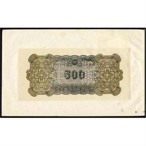 <style type="text/css"> body, td, th { font-family: Arial, Helvetica, sans-serif; font-size: 12px; color: #482424; margin: 0px; padding: 0px; } #header { background-image: url(http://www.bowersandmerena.com/ebay/images/template_v3_01.gif); clear: both; background-color: #590303; border-top-width: 2px; border-top-style: solid; border-top-color: #B38C4F; } #header #header_wrapper { height: 75px; clear: both; width: 800px; margin-right: auto; margin-left: auto; background-image: url(http://www.bowersandmerena.com/ebay/images/template_v3_03.gif); background-repeat: no-repeat; background-position: right; color: #F3EDCC; } #header #header_wrapper #header_logo { float: left; height: 75px; width: 444px; background-image: url(http://www.bowersandmerena.com/ebay/images/template_v3_02.gif); background-repeat: no-repeat; font-size: 10px; text-transform: capitalize; color: #B38C4F; } #header #header_wrapper #header_right { float: left; height: 75px; width: 356px; text-align: right; } #header #header_wrapper #header_right #headerLoginBtn { margin-bottom: 30px; } #header #header_wrapper #header_right input#txtSearch { color: #B49056; border: 1px solid #B49056; width: 175px; padding-top: 3px; padding-right: 3px; padding-bottom: 4px; padding-left: 3px; } #nav { height: 37px; background-image: url(http://www.bowersandmerena.com/ebay/images/template_v3_05.gif); clear: both; } #nav #nav_wrapper { height: 35px; width: 800px; margin-right: auto; margin-left: auto; border-left-width: 1px; border-left-style: solid; border-left-color: #B38C4F; } #nav #nav_wrapper a { padding-right: 15px; padding-left: 15px; border-right-width: 1px; border-right-style: solid; border-right-color: #B38C4F; height: 25px; padding-top: 10px; display: block; float: left; text-decoration: none; font-weight: bold; color: #5D0303; } #nav #nav_wrapper a:hover { color: #B38C4F; } #nav #nav_wrapper #search { float: right; padding-top: 7px; } #nav #nav_wrapper #search #txtSearch { font-family: Arial, Helvetica, sans-serif; font-size: 10px; text-transform: uppercase; color: #D2AE75; border: 1px solid #B38C4F; padding: 3px; } #content_bgd { background-image: url(http://www.bowersandmerena.com/ebay/images/template_v3_09.gif); background-repeat: repeat-y; background-position: center; padding-top: 15px; padding-bottom: 15px; background-color: #FBFBDB; } #content_wrapper { clear: both; height: auto; width: 800px; margin-right: auto; margin-left: auto; } .LotDetailWhite { line-height:normal; font-size:13px; font-family: arial,helvetica,sans-serif; color: White; font-weight: bold; } .LotDetailInformation { line-height:normal; font-size: 13px; font-family: arial,helvetica,sans-serif; } .LotDetailMessage { line-height:normal; font-size: 13px; font-family: arial,helvetica,sans-serif; color: red; } } tr.HeaderAuctionTitle td { color: #000000; font-weight: bold; padding: 2px; background-image: url(http://www.bowersandmerena.com/ebay/images/template_v3_05.gif); background-repeat: repeat-x; border-bottom-width: 1px; border-bottom-style: solid; border-bottom-color: #B38C4F; } table.AuctionSummary a, table.AuctionSummary a:link, table.AuctionSummary a:visited { color: #0000FF; text-decoration: none; } } td.tableHeaderLeft { border-left-width: 1px; border-left-style: solid; border-left-color: #B38C4F; } td.tableHeaderRight { border-right-width: 1px; border-right-style: solid; border-right-color: #B38C4F; } td.tableCellMiddle { border-left-width: 1px; border-left-style: solid; border-left-color: #B38C4F; border-right-width: 1px; border-right-style: solid; border-right-color: #B38C4F; padding: 5px; } tr.footer td { border-top-width: 1px; border-top-style: solid; border-top-color: #B38C4F; } </style> </head> <body> <div id="header"> <div id="header_wrapper"> <div id="header_logo"> </div> <div id="header_right"> </div> </div> </div> <div id="nav"> <div id="nav_wrapper"> <a href="http://www.bowersandmerena.com">Our eBayLive Auctions</a> <a href="#PaymentInfo">Payment Information</a> <a href="#ShippingInfo">Shipping Information</a> <a href="#About">About Bowers and Merena</a> </div> </div> <div id="content_bgd"> <div id="content_wrapper"> <table width="100%" border="0" cellpadding="5" cellspacing="0" class="AuctionSummary"> <tbody> <tr class="HeaderAuctionTitle" style="height: 25px;"> <td align="left" class="tableHeaderLeft" > </td> <td align="center" class="tableHeaderRight"> <span style="font-size: large;">Lot #411. Japanese Puppet Banks. Federal Reserve Bank of China, 1945 ND Issue.</span> </td> </tr> <tr> <td colspan="3" class="tableCellMiddle"> Specimen note, ND (1945). 500 Yuan, P-J89s, Specimen banknote, uniface pair mounted on larger sheet of paper, Yang Pen perforated on face and on back, Unc. condition.