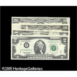 <B>Federal Reserve Note Board Break Errors</B></I><BR>$2 1995 Federal Reserve Note Atlanta Gem Crisp Uncirculated<BR>$5 1995 Federal Reserve Note New York Extremely Fine<BR>$20 1977 Federal Reserve Note Chicago Gem Crisp Uncirculated<BR>$20 1990 Federal Reserve Note Cleveland Gem Crisp Uncirculated.<BR> 4 notes Lot:15347