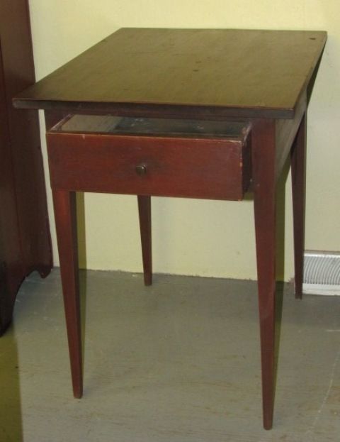 19th Century Federal Single Stand, in Red Paint, tappered legs - with single dovetailed drawer