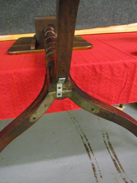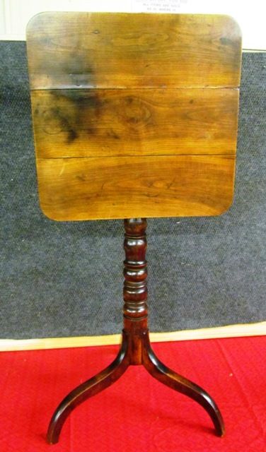 18th Century Federal Tilt top Candle Stand w/original Hinge Lock - turned column w/spider Leg and Dovetailed Construction 28" x 17.5 "