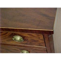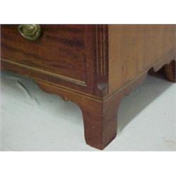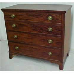 Federal mahogany chest of drawers, rectangular overhanging top with line inlay, over four graduated beaded drawers, each drawer with brass escutcheons and hardware, flanked by line inlay chamfered corners, line inlay over bracket feet, C.1820 Estimate 1000/2000