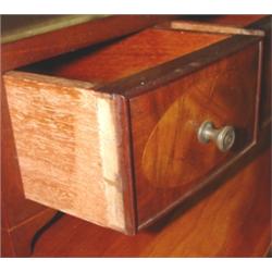 Federal style walnut shaving mirror with inlay and three drawers. Measures 24" tall to top of side finials, 21" wide, and 8 1/4" deep.