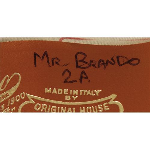 <B>Fedora Worn by Marlon Brando in "The Godfather."</B></I> Aside from an Oscar nomination for his performance in <I>Sayonara,</B></I> Marlon Brando's acting had lost much of its energy and direction by the end of the 1950s, and his career continued to spiral downwards in the '60s, as he gave increasingly uninspired performances -- or sometimes intriguing and nuanced ones in marginal movies that were often commercial failures. His career had virtually ground to a halt by the end of the decade thanks to his reputation as a difficult star and his record as box-office poison. His performance as Vito Corleone in <I>The Godfather</B></I> changed all that. Director Francis Ford Coppola convinced Brando to submit to a screen test, for which Brando did his own make-up. Coppola was impressed by Brando's characterization as the head of a crime family, but had to fight the studio in order to cast him (they lobbied for Laurence Olivier, Ernest Borgnine, and Burt Lancaster). Ultimately, Brando won the Academy Award for Best Actor for his performance, which he (in)famously rejected. This striking brown fedora was worn by Brando in that career defining role, in the scene that involved the attempt on Vito's life at the fruit stand. The hat is in Excellent condition with minimal wear, and has "Mr. Brando 2A" written in black ink on the sweatband. <I>Accompanied by COA from Hollywood Prop Supply.</B></I>