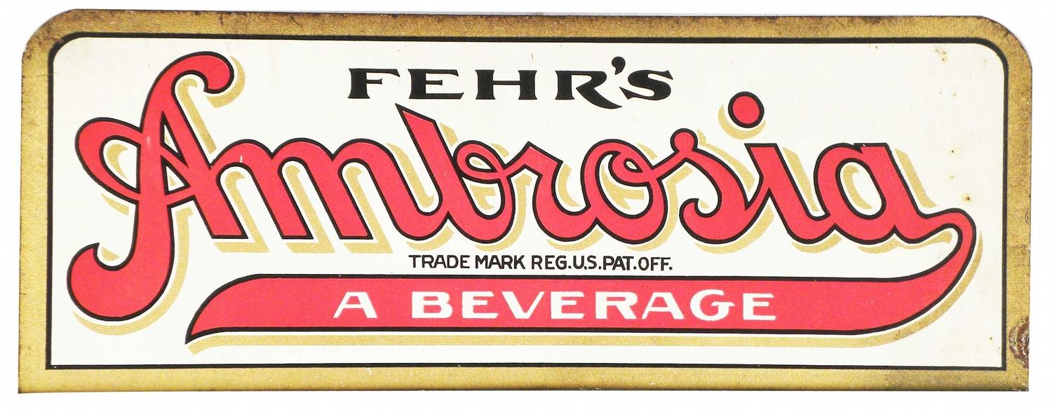 Fehr's Ambrosia Tin Cash Register Top Sign. Some slight rust around the edges otherwise excellent condition. 9 X 3 3/8 inches.
