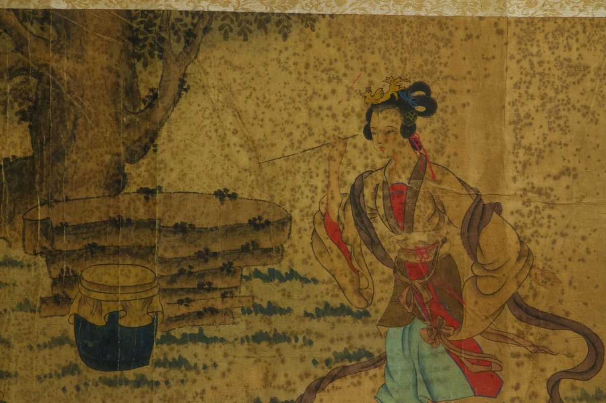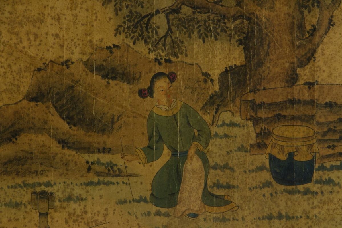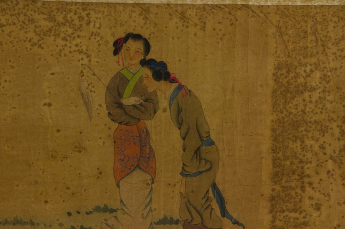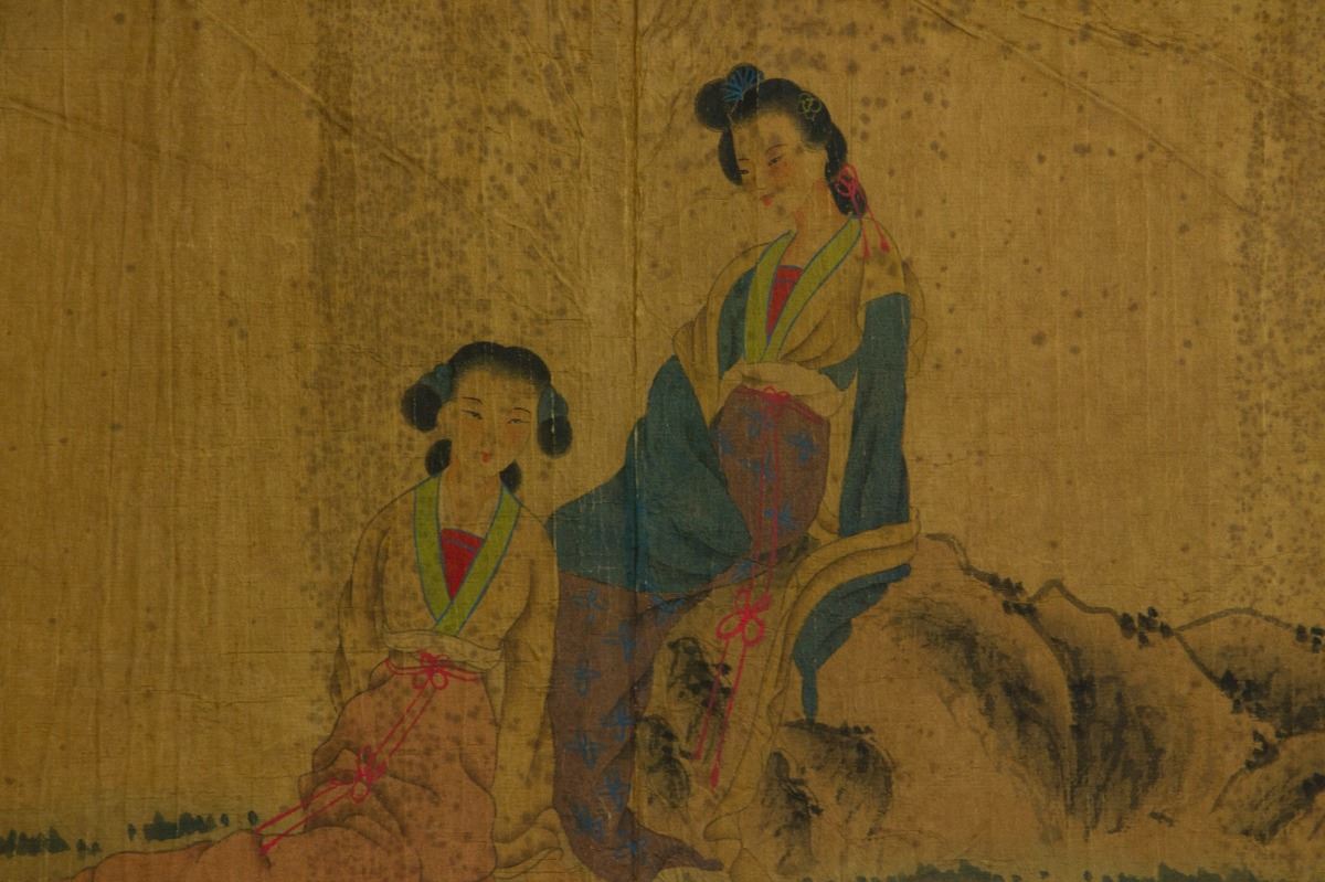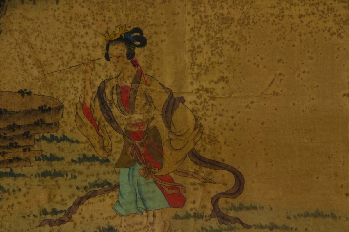 Thirteen young ladies playing musical instruments; Chinese ink and watercolour on paper; hand scroll; signed Fei Danxu (1802-1850); inscribed with 1 artist seal; with cover and comments written by Wu Hu Fan (1894-1968), inscribed with 2 seals; 29 cm × 607 cm