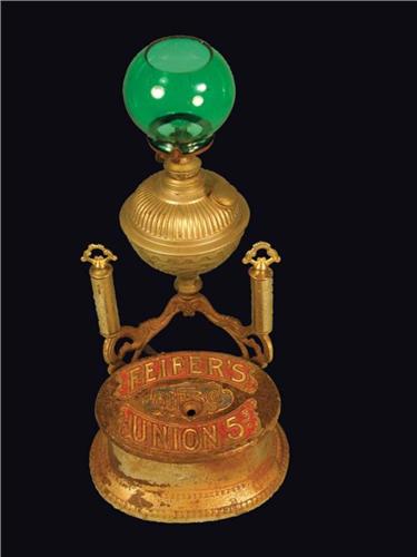 Feifers Union Cigar cutter and lighter, Cast Iron. Most of nickel and paint gone otherwise good condition comes with key, 7 x 14 x 6 1/2 inches.