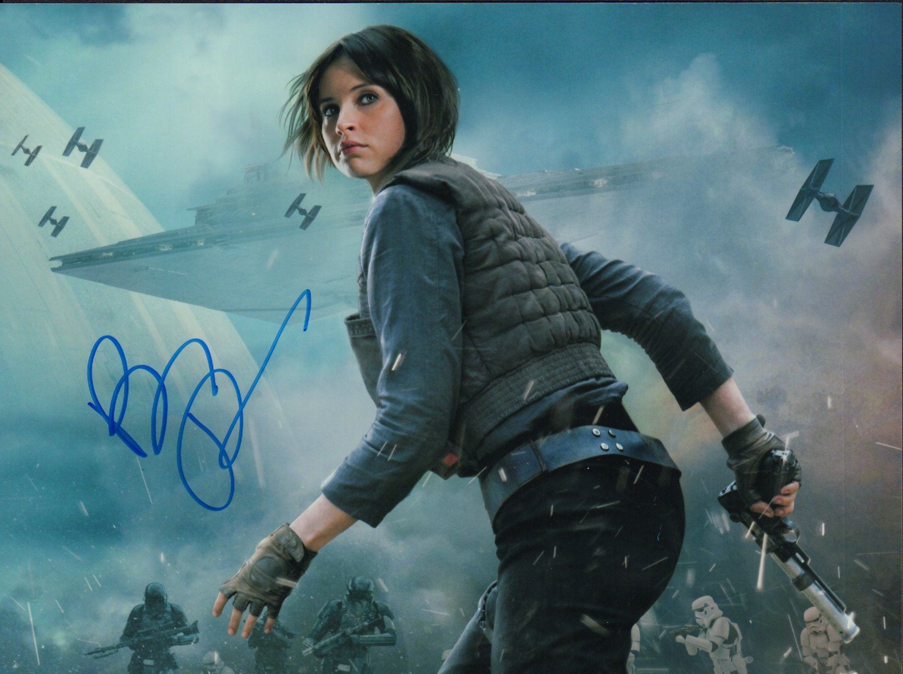 Color 8x10 photograph from the Star Wars franchise signed by Felicity Jones. All items come with a certificate of authenticity good for the life of the piece.