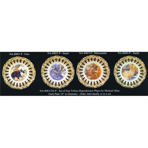 Capodimonte Porcelain Feline Plate Complete Set. A total of 4 plates. Feline Reproduction Plates by Michael Ohne. Each plate is 10" in diameter. Satisfaction Guaranteed All our capodimonte pieces are 100% authentic, made with the best craftmanship in Italy. Capodimonte is more than a century Italian style of the finest porcelain once reserved for kings and queens. The style became popular when the royal family in Italy fell in love with the beauty of Capodimonte arts. The selection you see is made by artisans, according to the same tradition dating back to the 18th Century.<BR>Free Shipping in the continental US