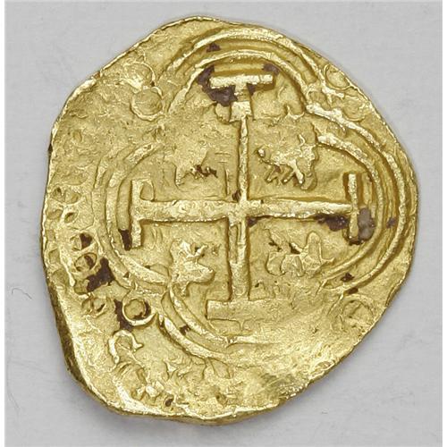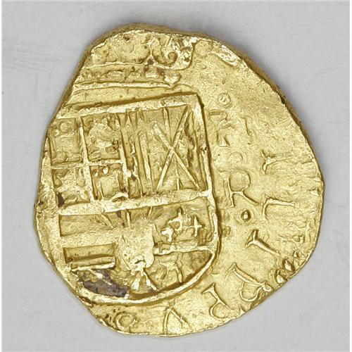 <B>Felipe IV gold 2 Escudos ND (1650-1660), </B></I>KM4, crude VF-XF but nicely struck on the obverse with clear NR to the right of the shield and a good portion of PHILIPPVS readable. Just a bit of superficial encrustation.<BR><BR><b>Shipping:</b> Coin/Currency (<a target="_blank" href="http://www.heritageauctions.com/common/shipping.php">view shipping information</a>)