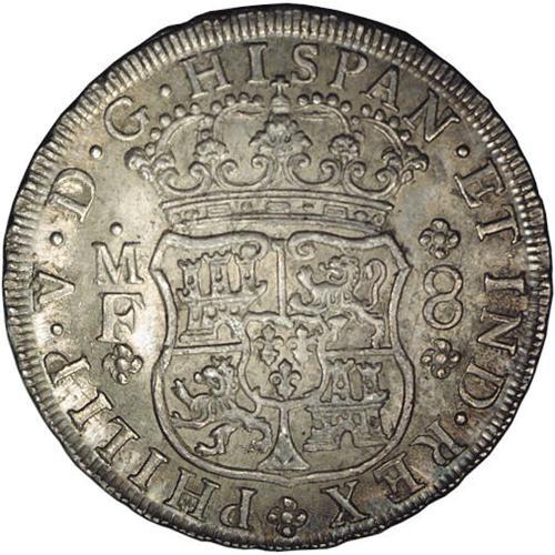 <B>Felipe V Pillar 8 Reales 1741Mo-MF, </B></I>KM103, MS64 NGC, a superb, fully detailed example with gorgeous gray and gold patina. Very rare in this lofty designation. Ex-Von Schuckman Collection.