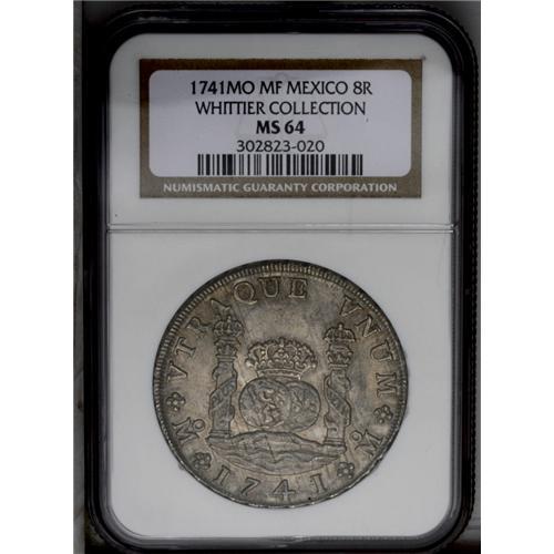 Felipe V Pillar 8 Reales 1741Mo-MF, KM103, MS64 NGC, a Felipe V Pillar 8 Reales 1741Mo-MF,