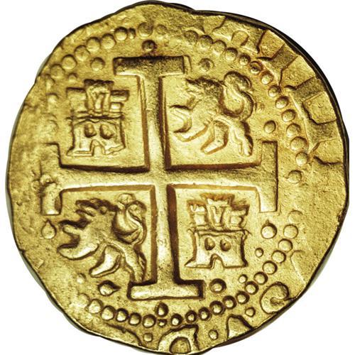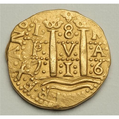 <B>Felipe V gold cob 8 Escudos 1716-M, </B></I>KM38.2, Friedberg 7, choice AU, nicely centered and sharply struck, a premium example of this extremely popular coinage. Scarce variety with rows of dots for lines in the obverse central legends.<BR><BR><b>Shipping:</b> Coin/Currency (<a target="_blank" href="http://www.heritageauctions.com/common/shipping.php">view shipping information</a>)