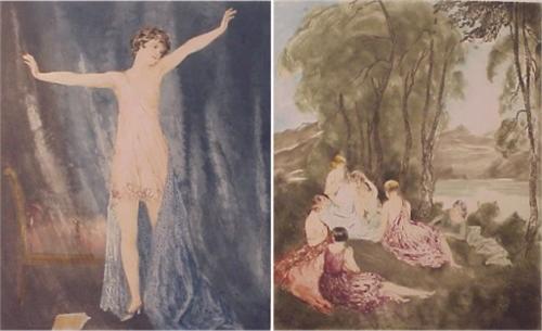 Felix (20th Century) European (two) LADY WITH OUTSTRETCHED ARMS; PASTORALE, a pair of color etchings, each signed in pencil, from the numbered editions 50 and artist’s proof, images 17 x 14" & 19 x 15 1/2", full margins. (2)