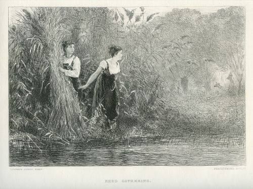 Felix Bracquemond Etching "Reed Gathering" - Etched By Bracquemond After Gustave Jundt. Published By London, Virtue & Co. This Impression Is On Wove Paper. Size: 6 1/2 X 9 3/4 Inches (Image) - Professionally Framed & Matted - Comes With Certificate - -