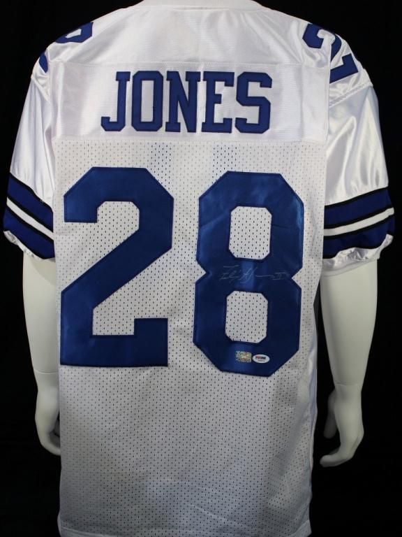 This is a Dallas Cowboys custom jersey signed by running back Felix Jones. The jersey comes with a Certificate of Authenticity from PSA/DNA the number one name in autograph authentication.