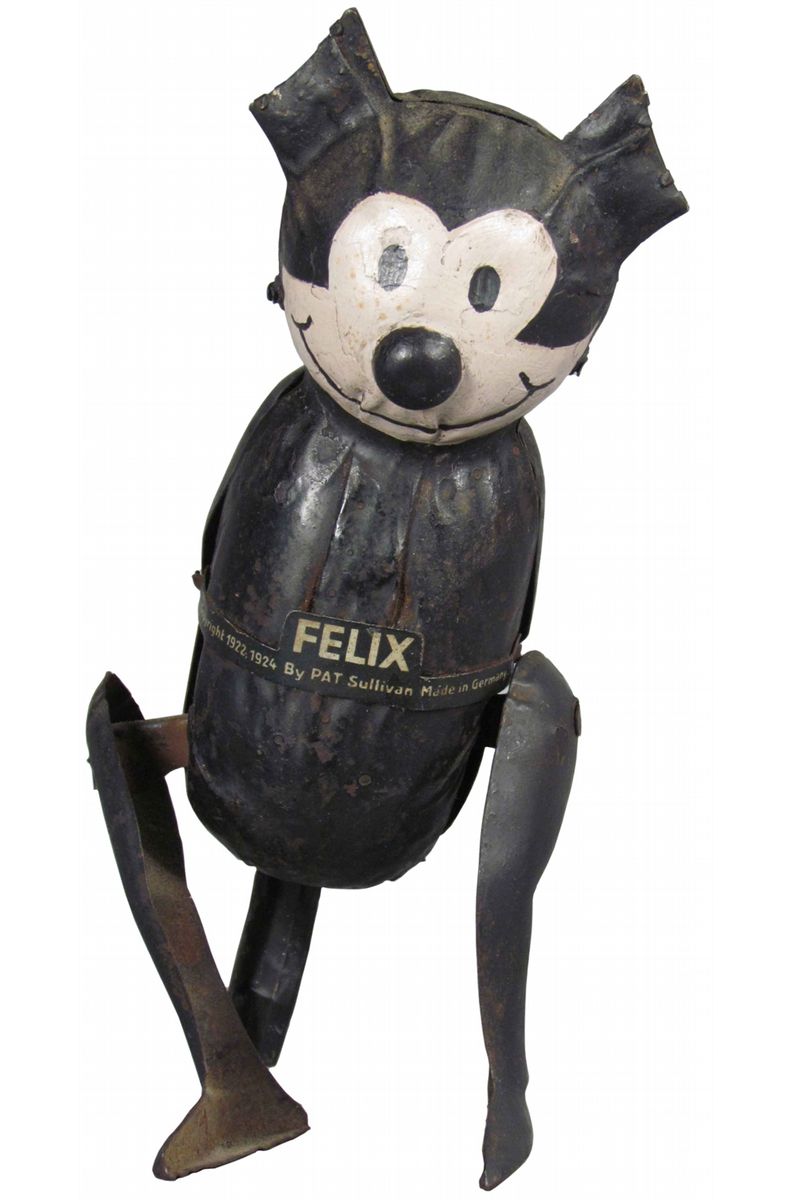 Felix the Cat German Tin Wind Up Toy. Some paint loss and wear, good condition. 7 1/4 inches tall.