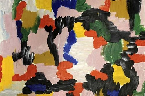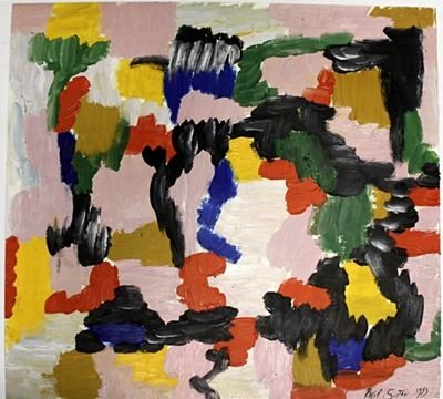 Oil on paper, attributed to Philip Guston, approx. 15x13 in. Philip Guston, born Phillip Goldstein, was a painter and printmaker in the New York School, an art movement that included many abstract expressionists like Jackson Pollock and Willem de Kooning.