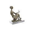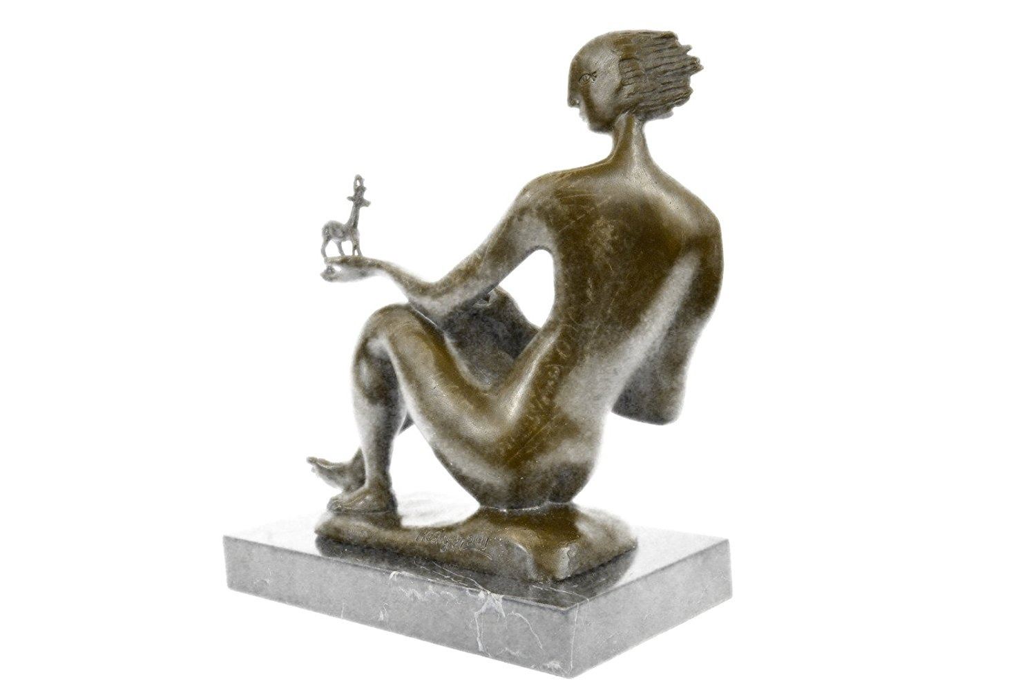 She sits crossed legged in stretched position, her head thrown back and her back is arched in pleasure. The nude woman places her hands out holding a goat. The rawness of this sculpture is heightened by smooth like surface. This carnal and gorgeous sculpture was crafted using the lost wax method. It rests on a black marble base. Bronze Dimensions with Marble Base: Height 10 X Width 10 inches. Weight: 11 LBS. Inventory: 63DS4754636