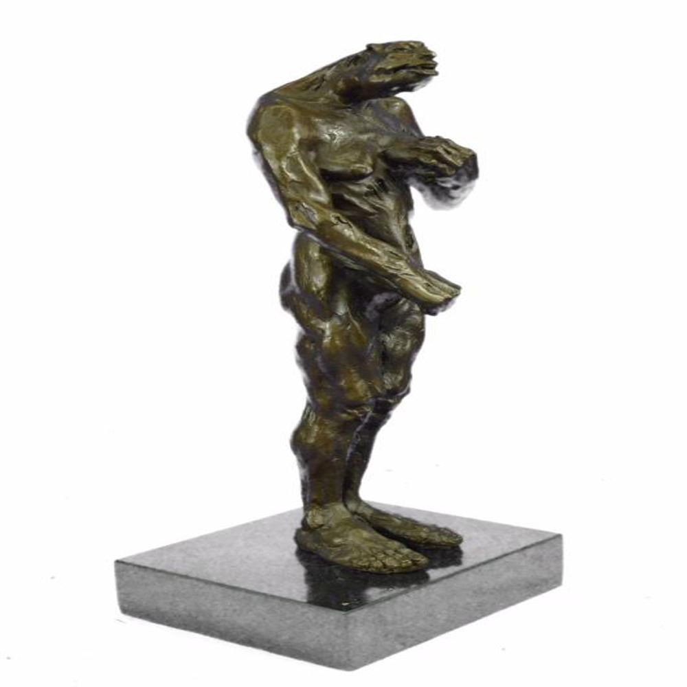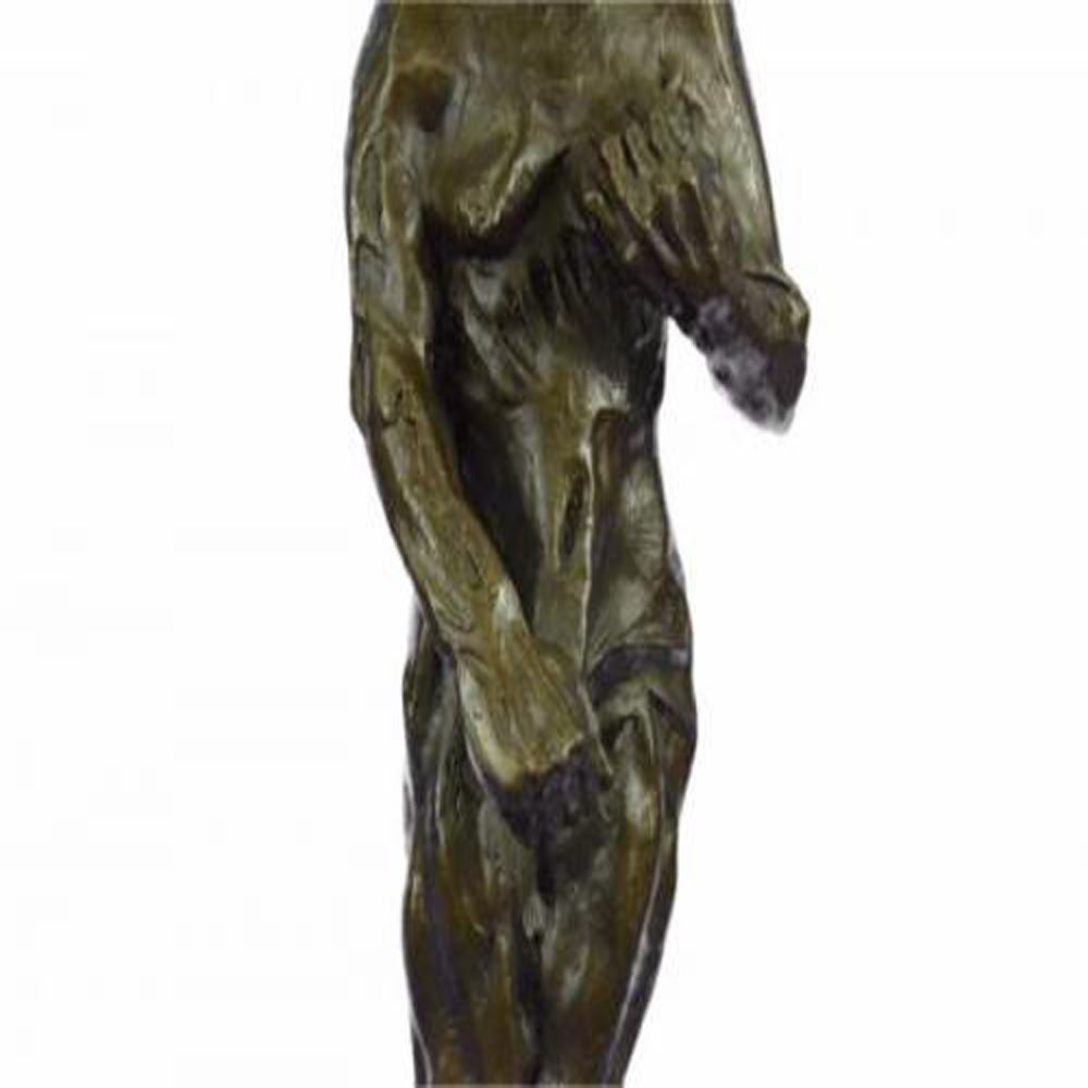 This beautiful Art Nouveau Bronze shows a Standing female monster, also named Creature. She sits on a marble base and looks curiously to the front of her. The human and animal parts of her body are shaped naturally with great detail. Bronze Dimensions with Marble Base: Height 12 X Width 5 inches. Weight: 7 LBS.