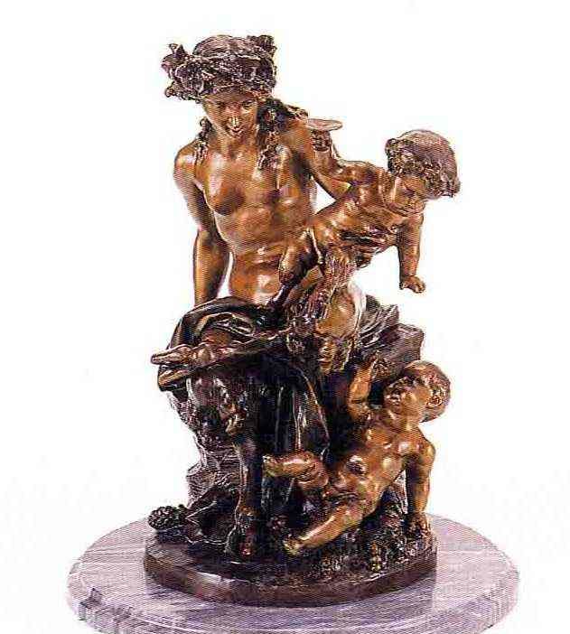 "Female Satyr Group" Bronze Sculpture - After Clodion - Beautiful Color Patina - Mounted On A Fine Italian Marble Base - Beautifully Detailed - Signed - Mint Condition - 20"H X 11"W - Lost Wax Cast Bronze