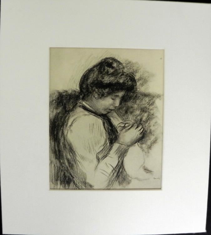 Artist: Pierre-Auguste RenoirTitle: Femme Cousant (Woman Sewing) - from 1921 Et Ses AmisMedium: Gravures "hors texte" (Engraving)Signature: Signed in plateMatte: SilkImage size: 7" x 5 3/4"Matte size: 12" x 10 3/4"Justification du Tirage (Justification of Drawing): Affixed to the back of the foam-core backingCondition: Excellent**Justification du triage: At the beginning or at the end of a volume, it is the indication given by the editor of a print edition, specifying the different types of copies published and paper used.BiographyAn innovative artist, Pierre-Auguste Renoir was born on February 25, 1841, in Limoges, France. He started out as an apprentice to a porcelain painter and studied drawing in his free time. After years as a struggling painter, Renoir helped launch an artistic movement called Impressionism in 1870s. He eventually became one of the most highly regarded artists of his time. He died in Cagnes-sur-Mer, France, in 1919.*retrieved from: http://www.biography.com/people/pierre-auguste-renoir-20693609#synopsis