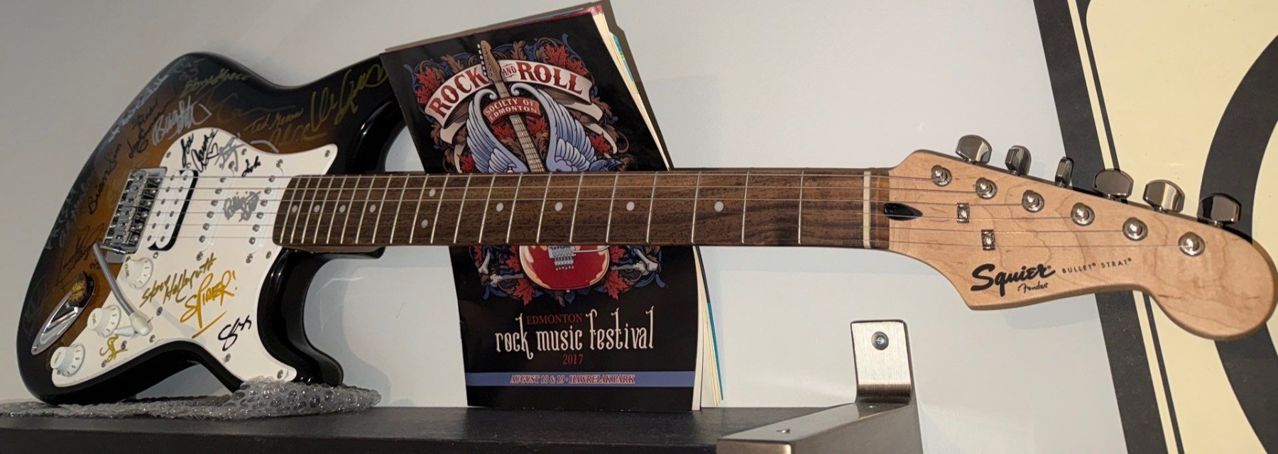 Fender Stratocaster Sunburst Finish Collector Item W/ Multiple Band Members Autographs from Rock Music Festival 2017