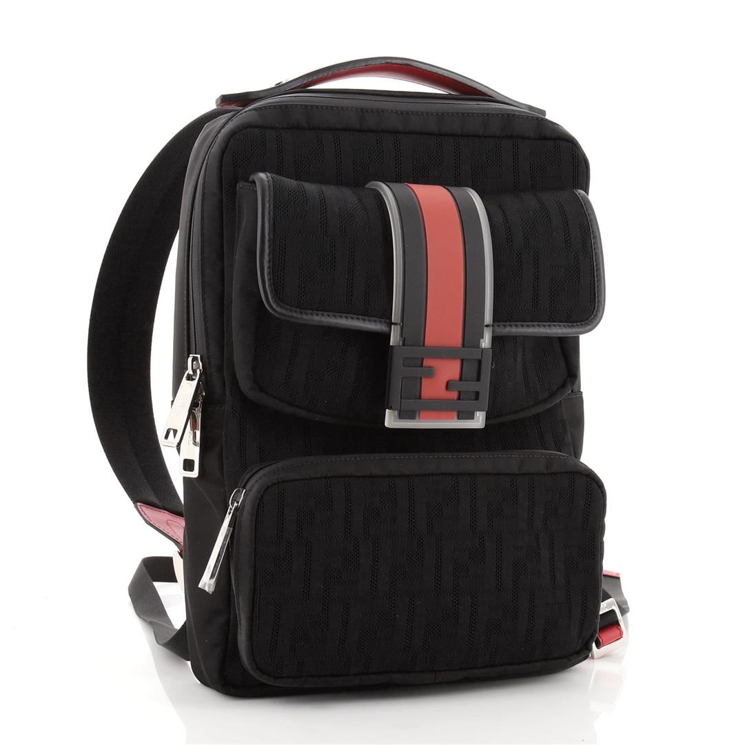 One Fendi Baguette Pocket Zip Backpack Zucca Mesh with Nylon and Rubber Medium. Item is sold AS-IS. All available information is listed in the description and shown in the photo. Fendi Baguette Pocket Zip Backpack Zucca Mesh with Nylon and Rubber Medium. Minor peeling on flap closure hardware, minor wear on straps, scratches on hardware. 78848
