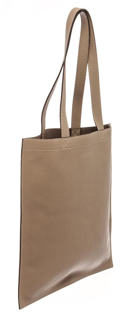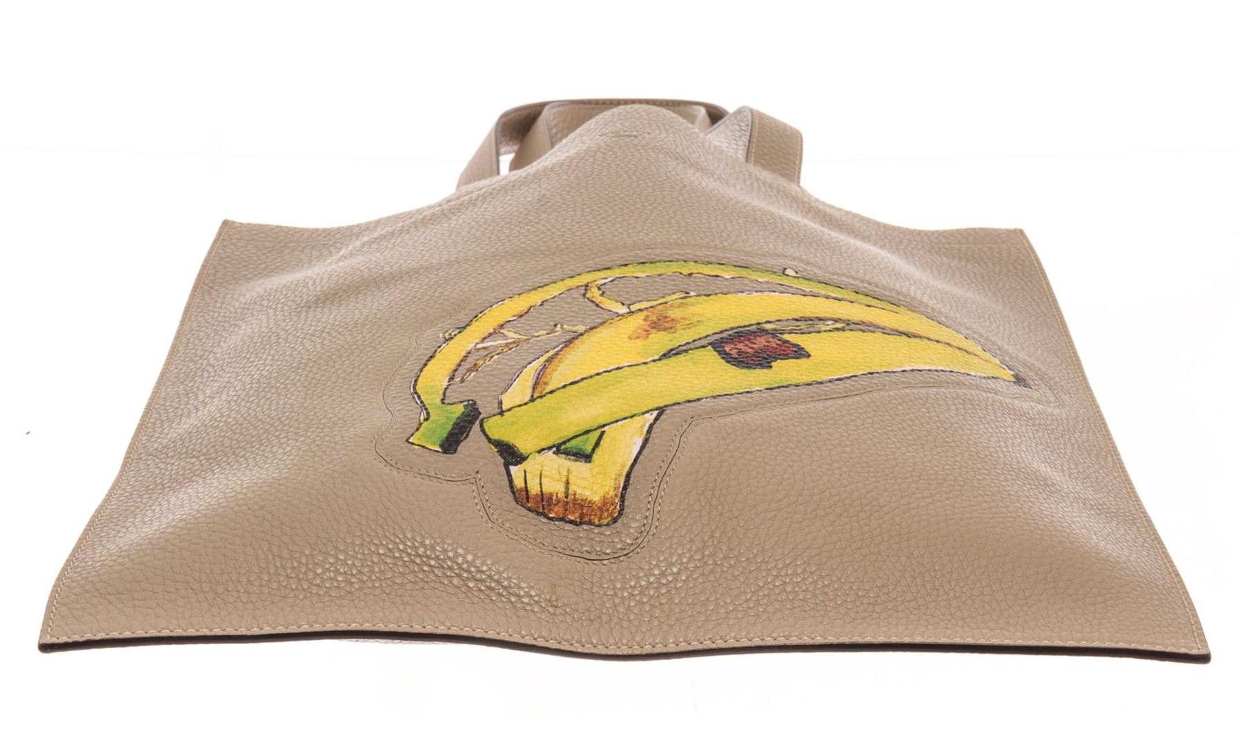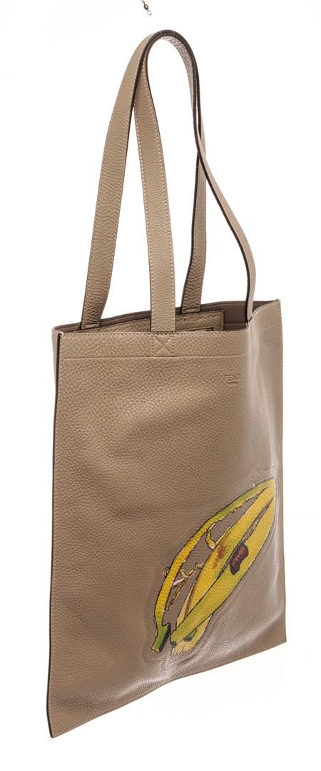 Fendi Banana Shopper Tote. Brand: Fendi, Style: Banana Shopper, Type: Tote, Exterior color: Beige, Exterior material: Pebble Leather, Interior color: Beige, Interior material: Canvas, Length: 14.5, Width: 1, Height: 16.5. Item is sold AS-IS and all inform