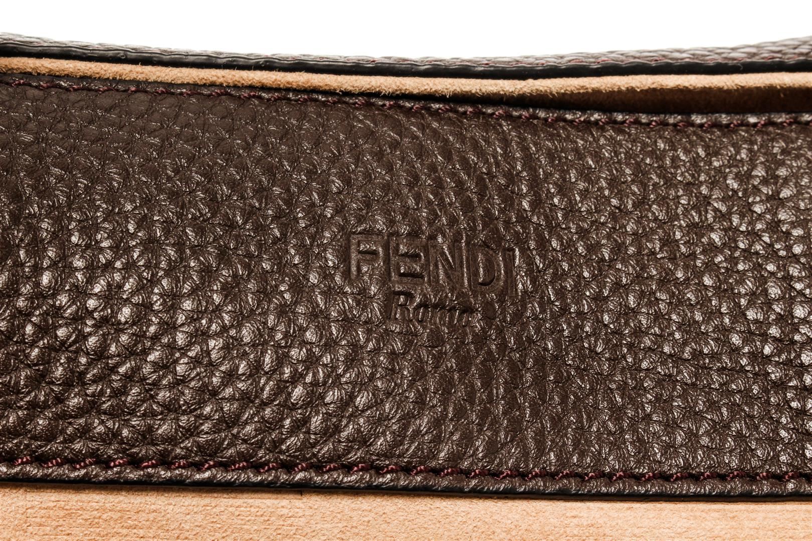 One Fendi Beige Open Tote Suede Handbag. Item is sold AS-IS. All available information is listed in the description and shown in the photo. Fendi Beige Open Tote Suede Handbag with dual brown leather top handles, fabric interior, gold toned hardware and zip closure.