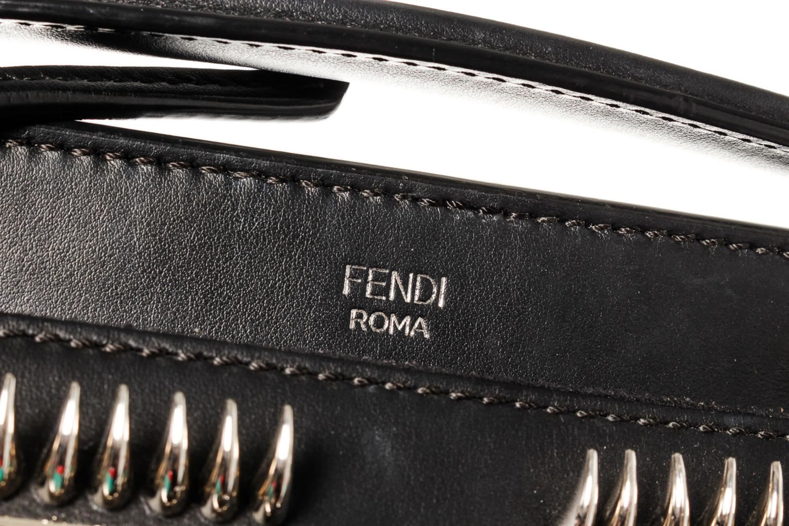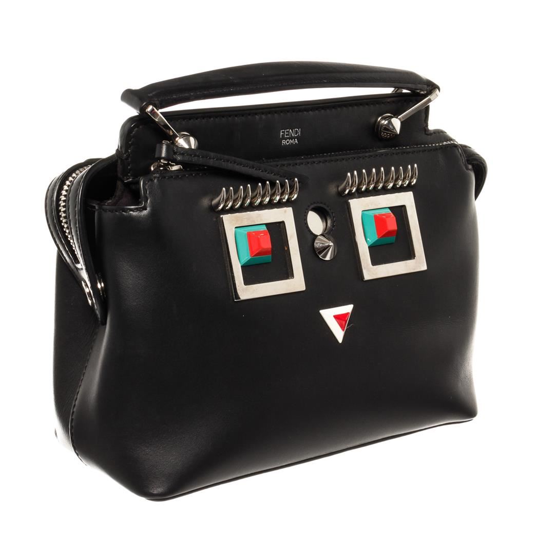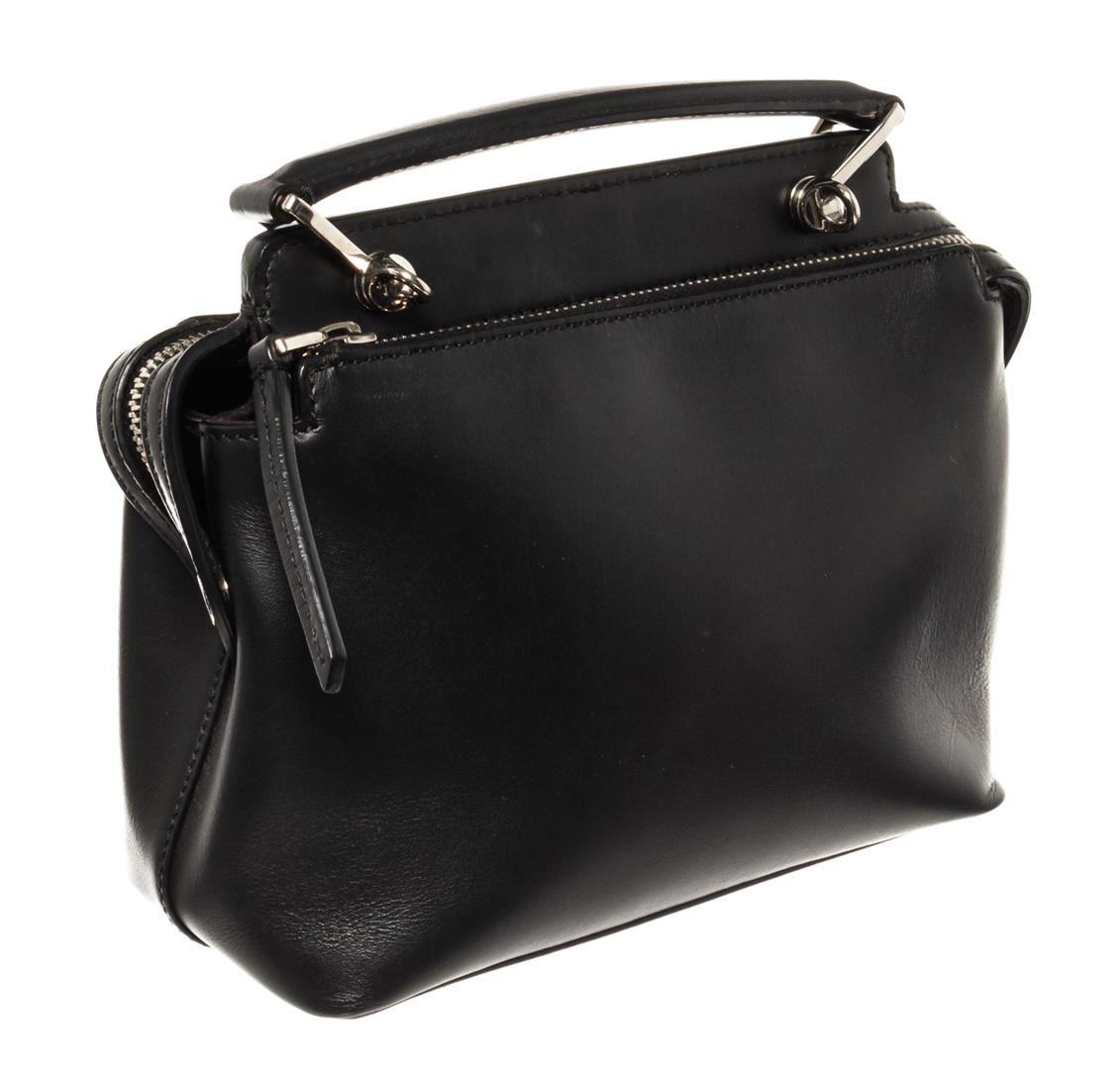 This Dotcom bag from Fendi is breathtakingly crafted from black leather, the bag has a silhouette that will have people drooling. It has adornments on the front that lends it a fun touch, and the top zipper reveals suede interiors spacious enough to carry