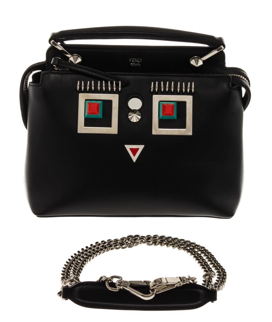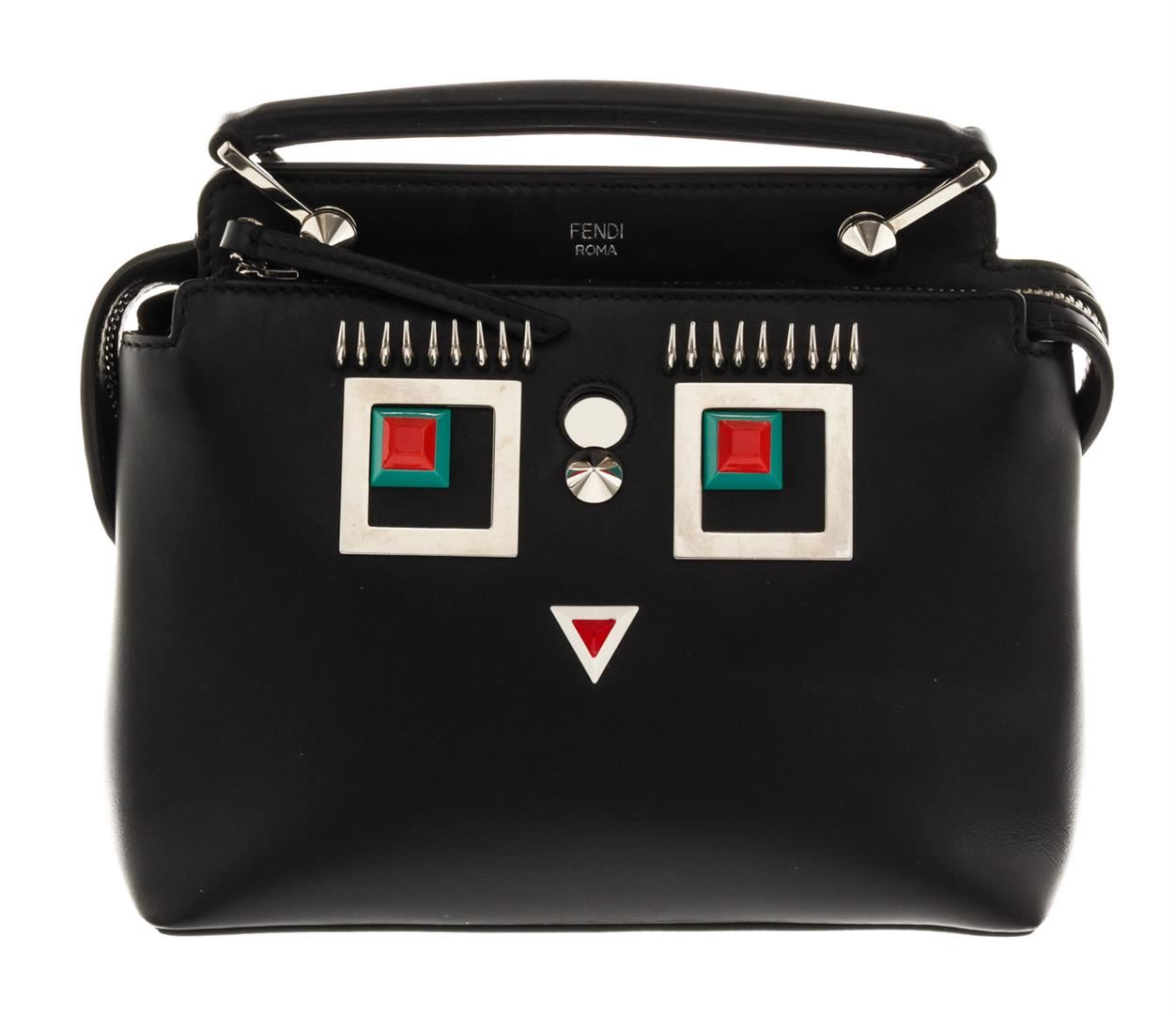 This Dotcom bag from Fendi is breathtakingly crafted from black leather, the bag has a silhouette that will have people drooling. It has adornments on the front that lends it a fun touch, and the top zipper reveals suede interiors spacious enough to carry